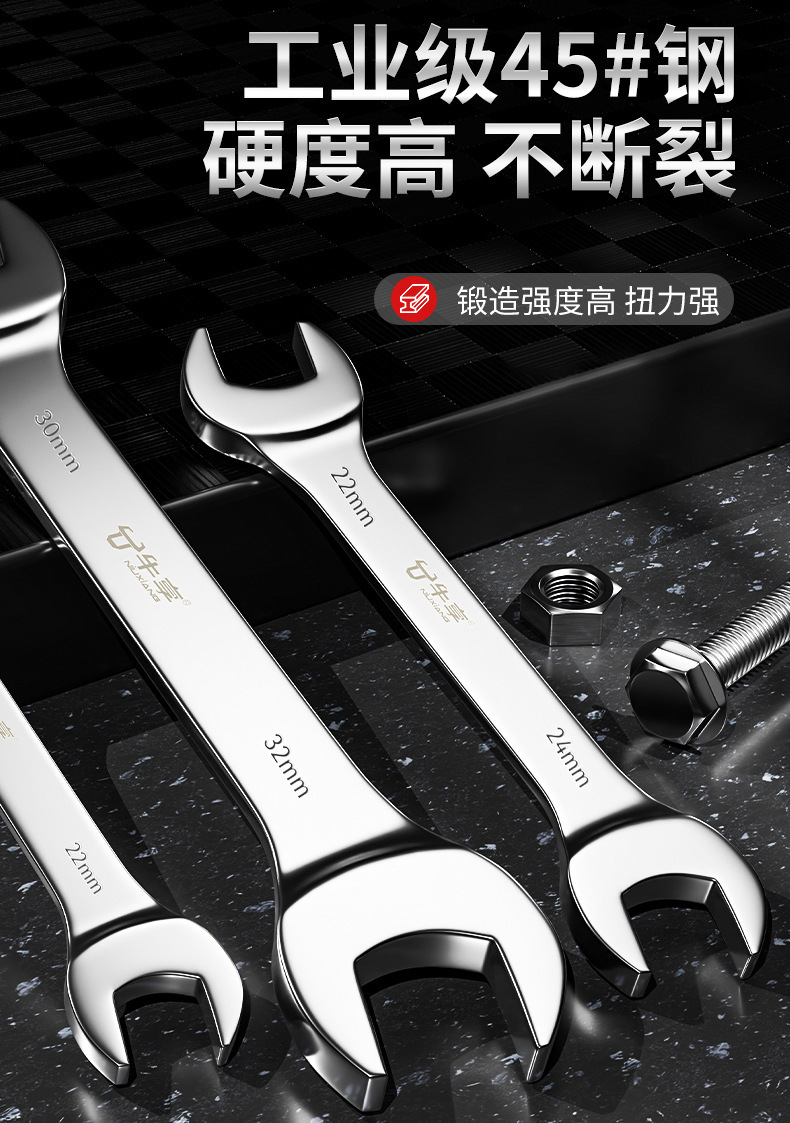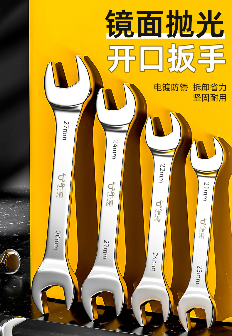 산업용 등급의 내구성이 뛰어난 고토크 오픈 엔드 렌치, 고경도 방청 미러 마감 두꺼운 절약형 양면 오픈 엔드 렌치스토어 가기