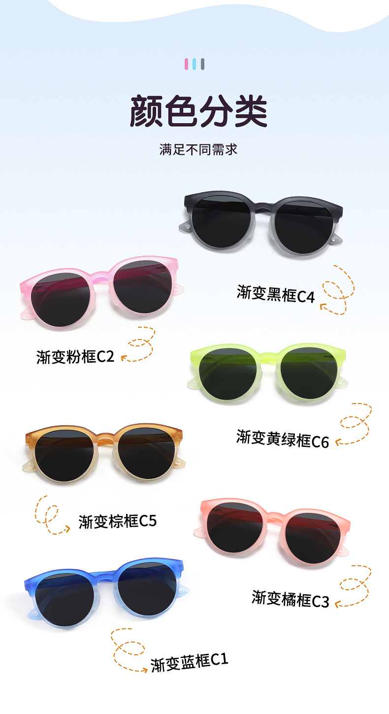 2026년 신상 패션 TR 편광 어린이 그라데이션 선글라스 야외 자외선 차단 패션 어린이 선글라스 KB695