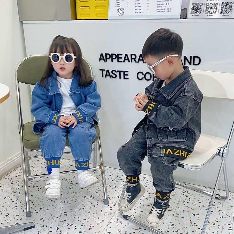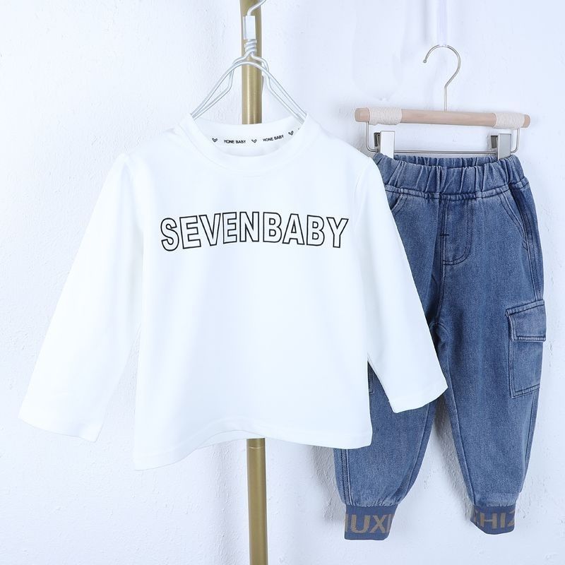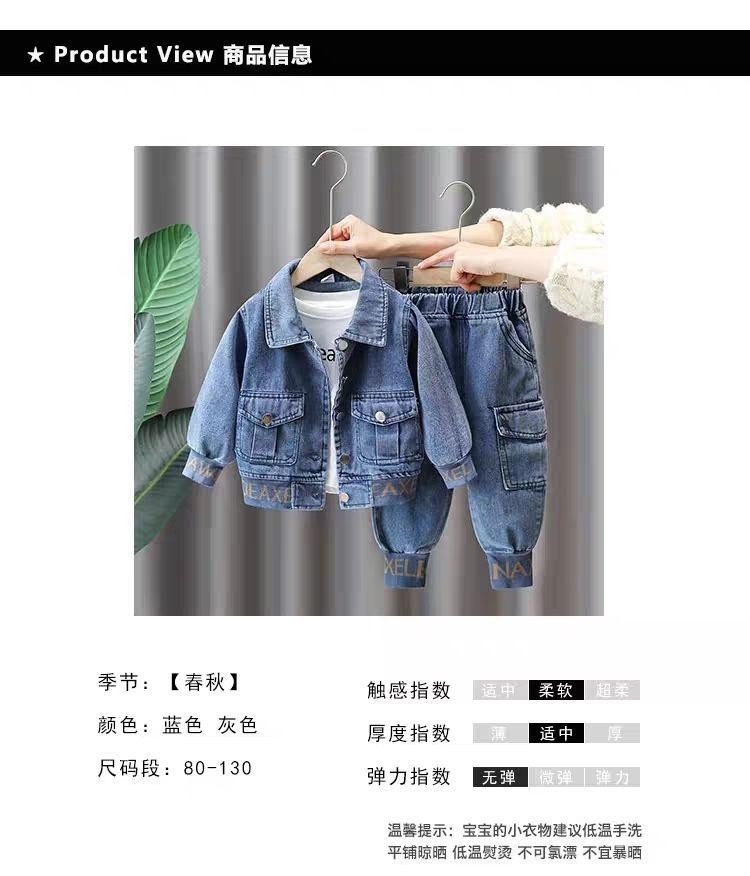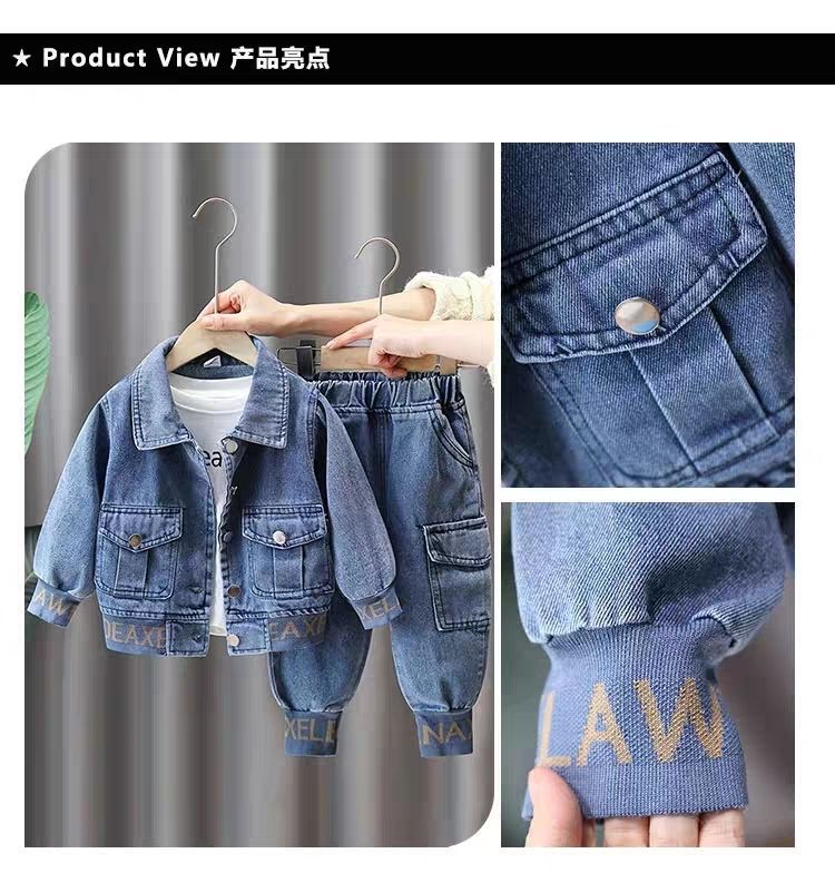 남아 데님 세트 2025 봄 패션 스타일리쉬 봄가을 아기 멋진 청바지 아동 투피스 세트 중소형 아동용스토어 가기