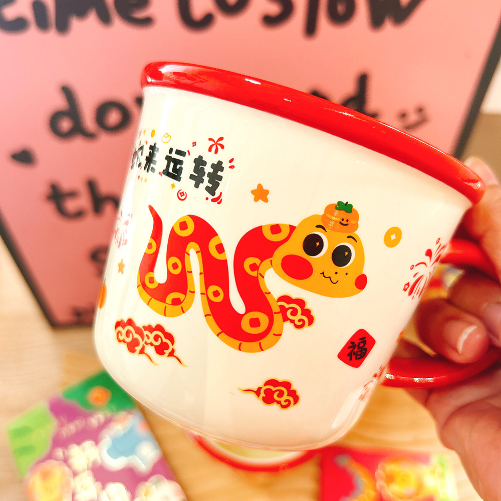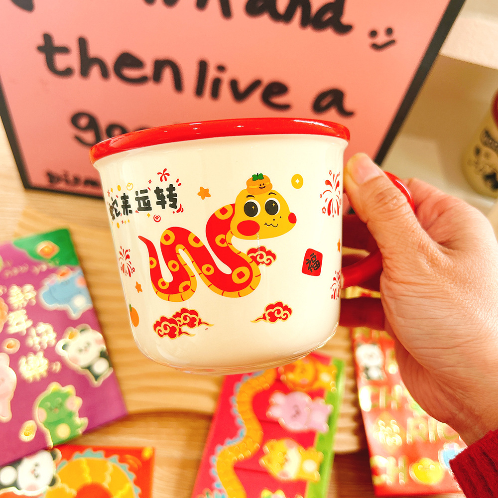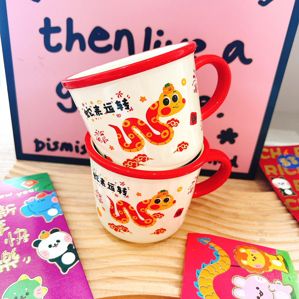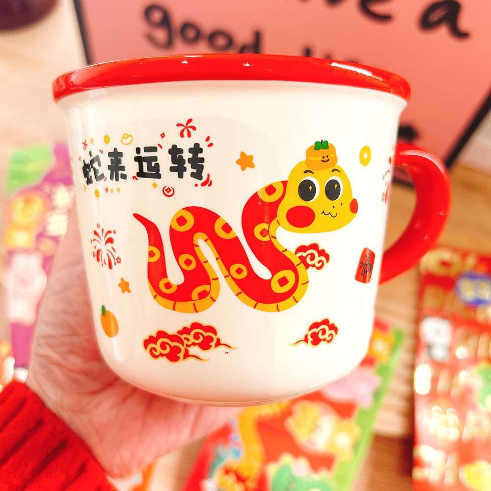 새해 선물 년 뱀 세라믹 컵 만화 머그잔 큰 좋은 선물 함께 선물 아침 식사 컵 우유 컵 보름달스토어 가기