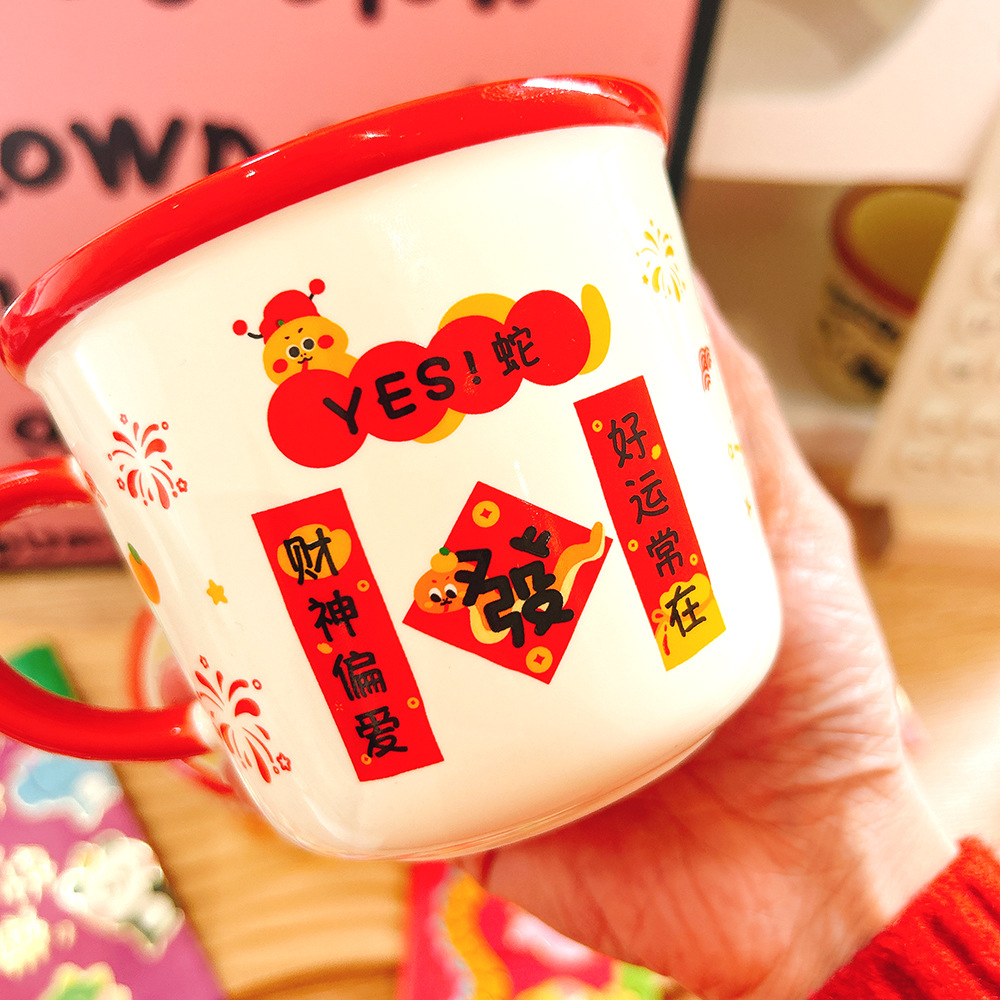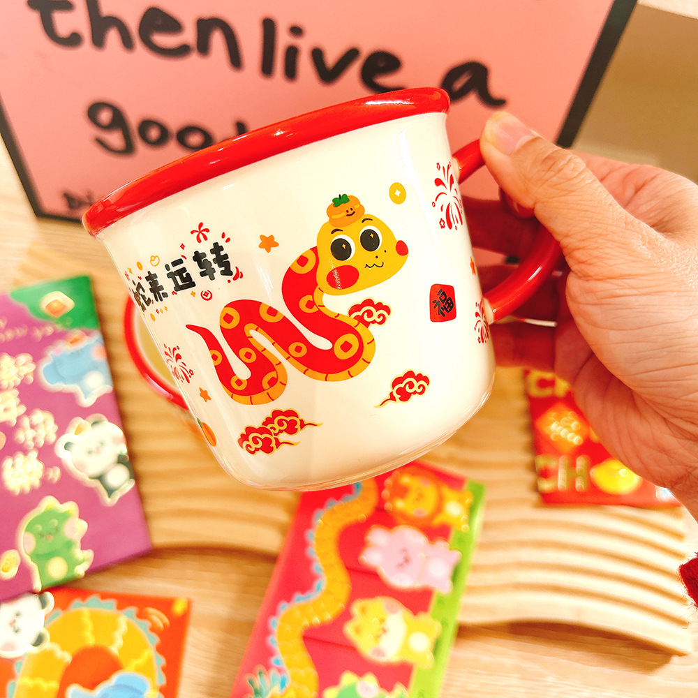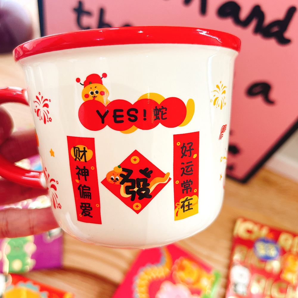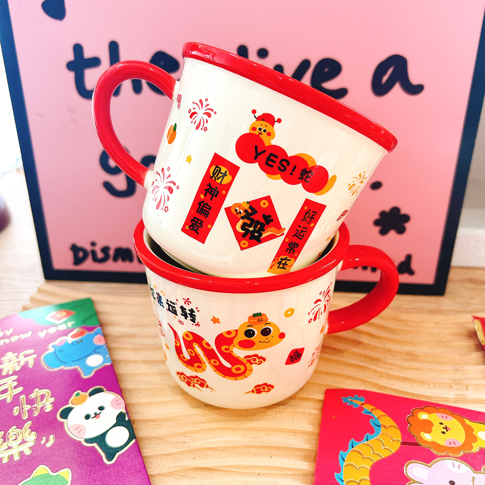 새해 선물 년 뱀 세라믹 컵 만화 머그잔 큰 좋은 선물 함께 선물 아침 식사 컵 우유 컵 보름달스토어 가기