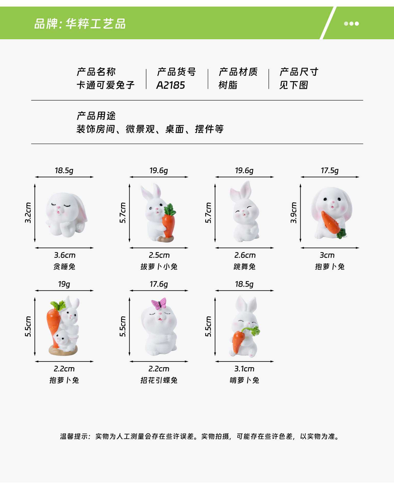 마이크로 풍경 장식품 만화 귀여운 토끼 원예 작은 동물 수지 액세서리 공예 가정 장식 도매