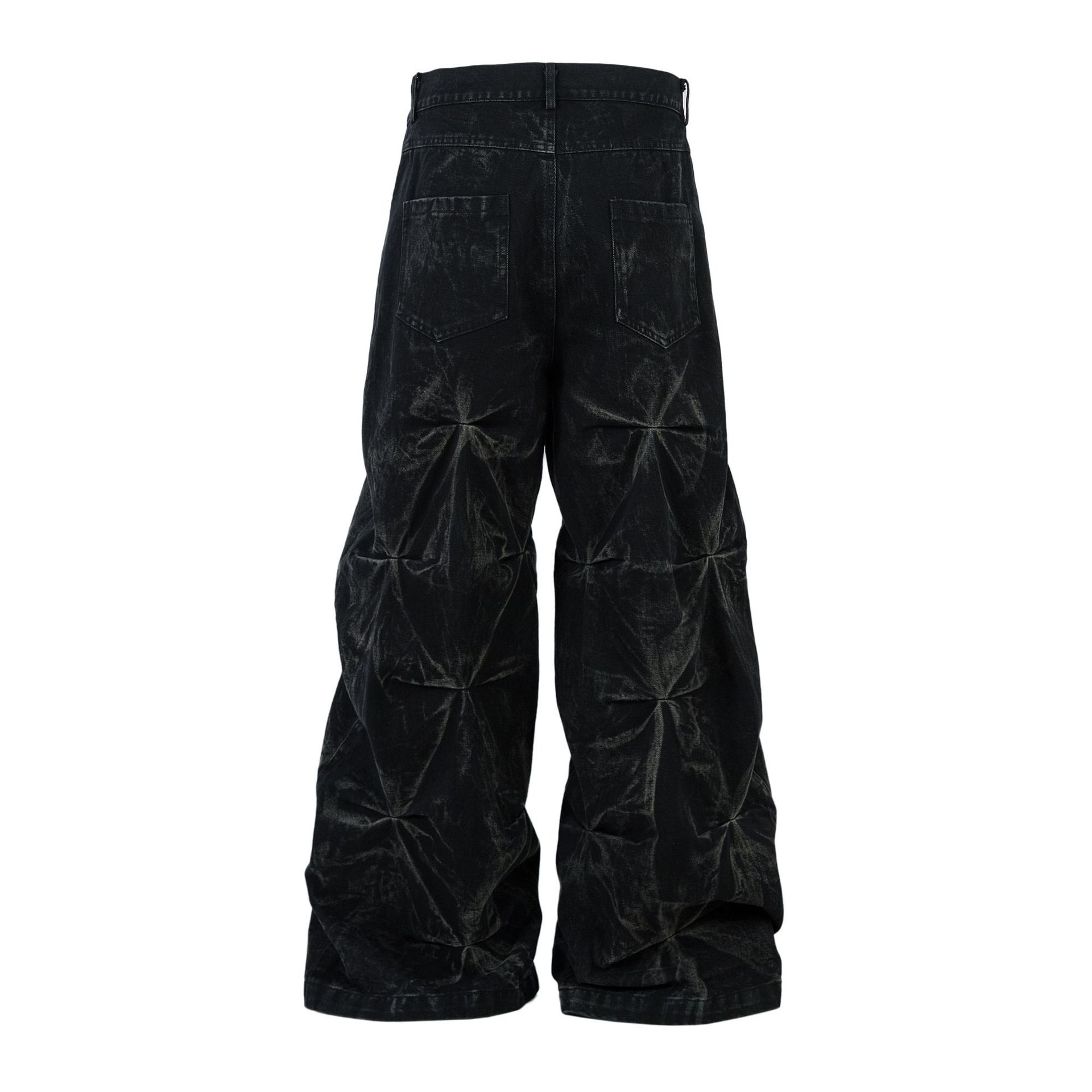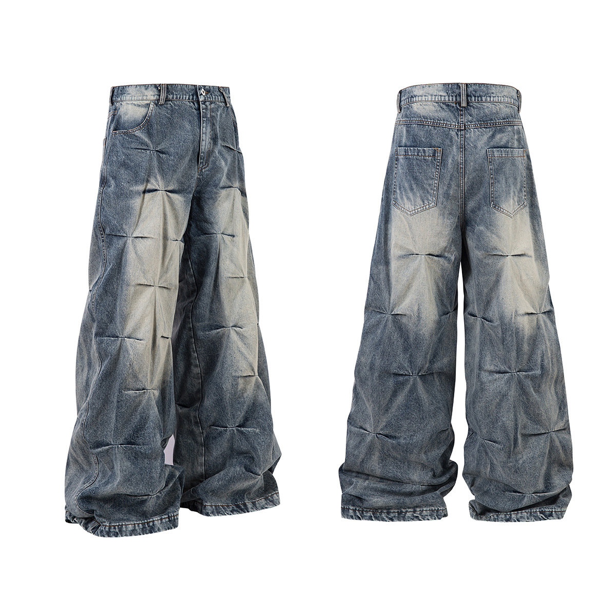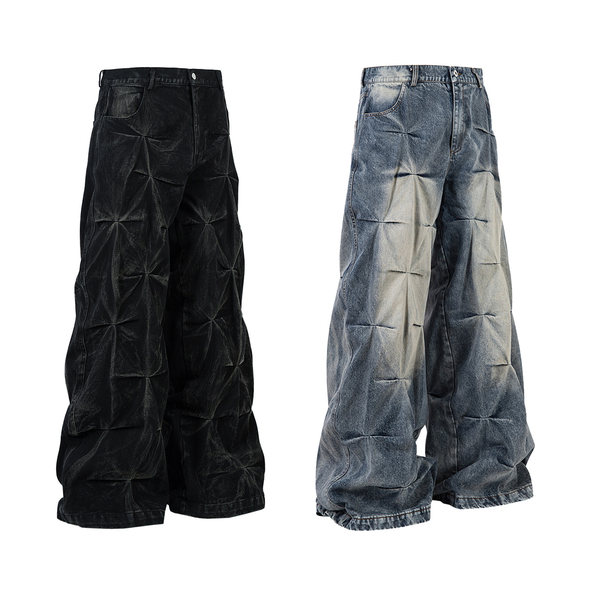 Jia Yi Ku 남성복 2026 신상 아메리칸 하이 스트리트 스타일 특이한 주름 워싱 데님 팬츠 루즈핏 RO 스타일 와이드 레그 롱 팬츠