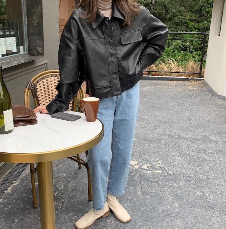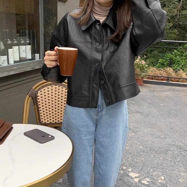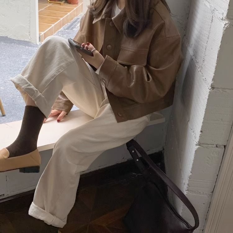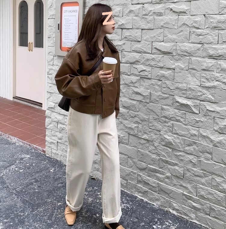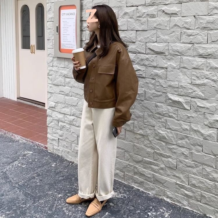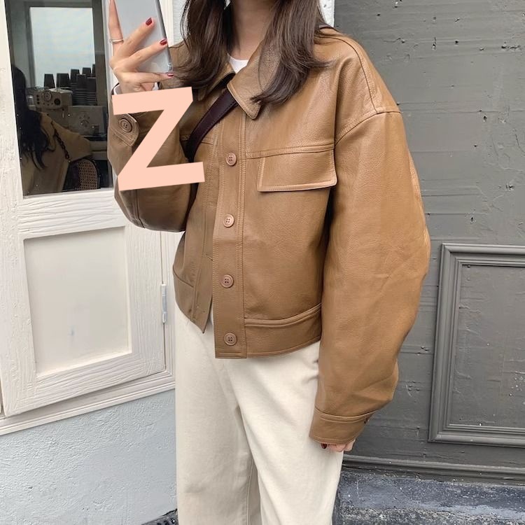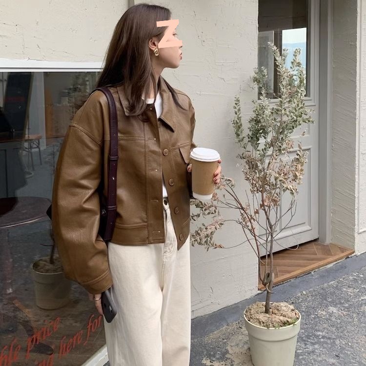 2026 봄 가을 신상 유럽풍 브라운 가죽 자켓 여성 PU 가죽 숏자켓 고급스러운 느낌의 작은 사이즈 레트로 상의스토어 가기