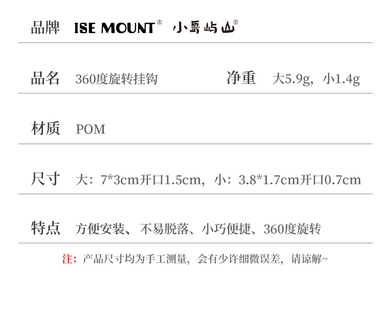 ISE MOUNT 야외 360 회전 후크 휴대용 S-훅 다기능 등산 버클 배낭 캠핑스토어 가기