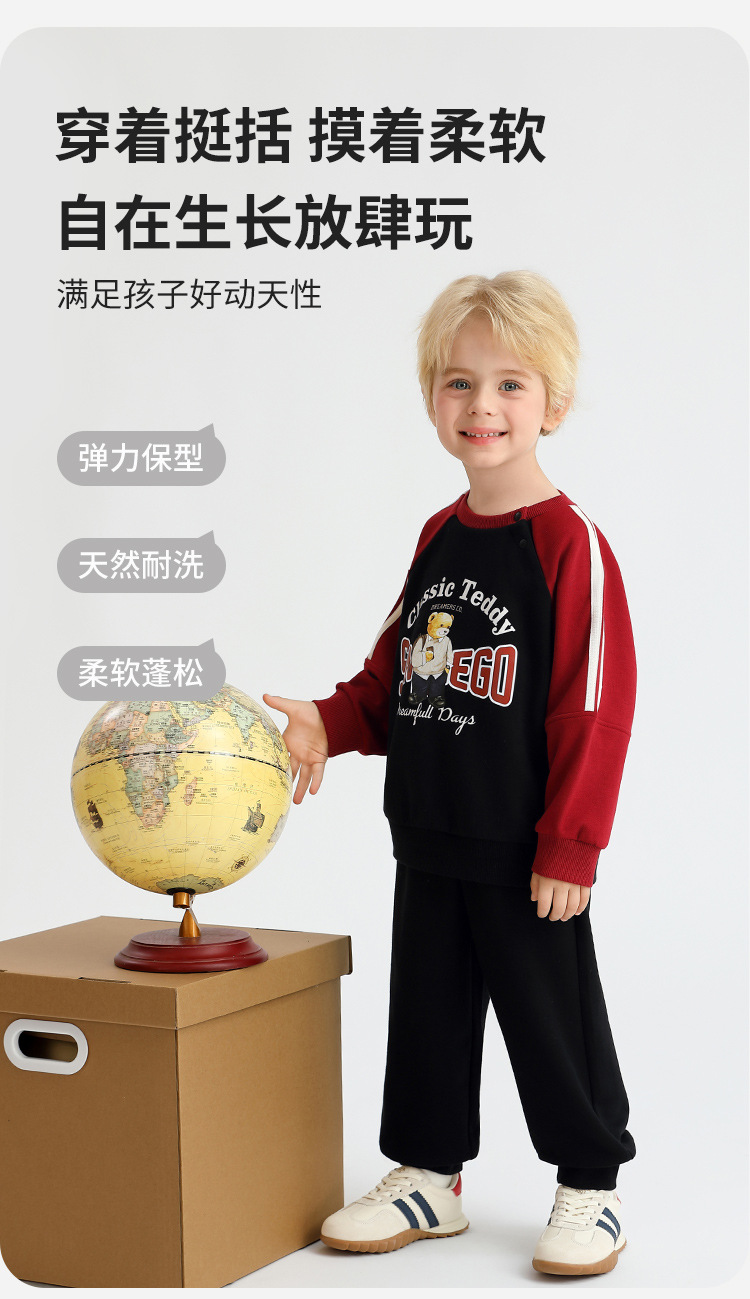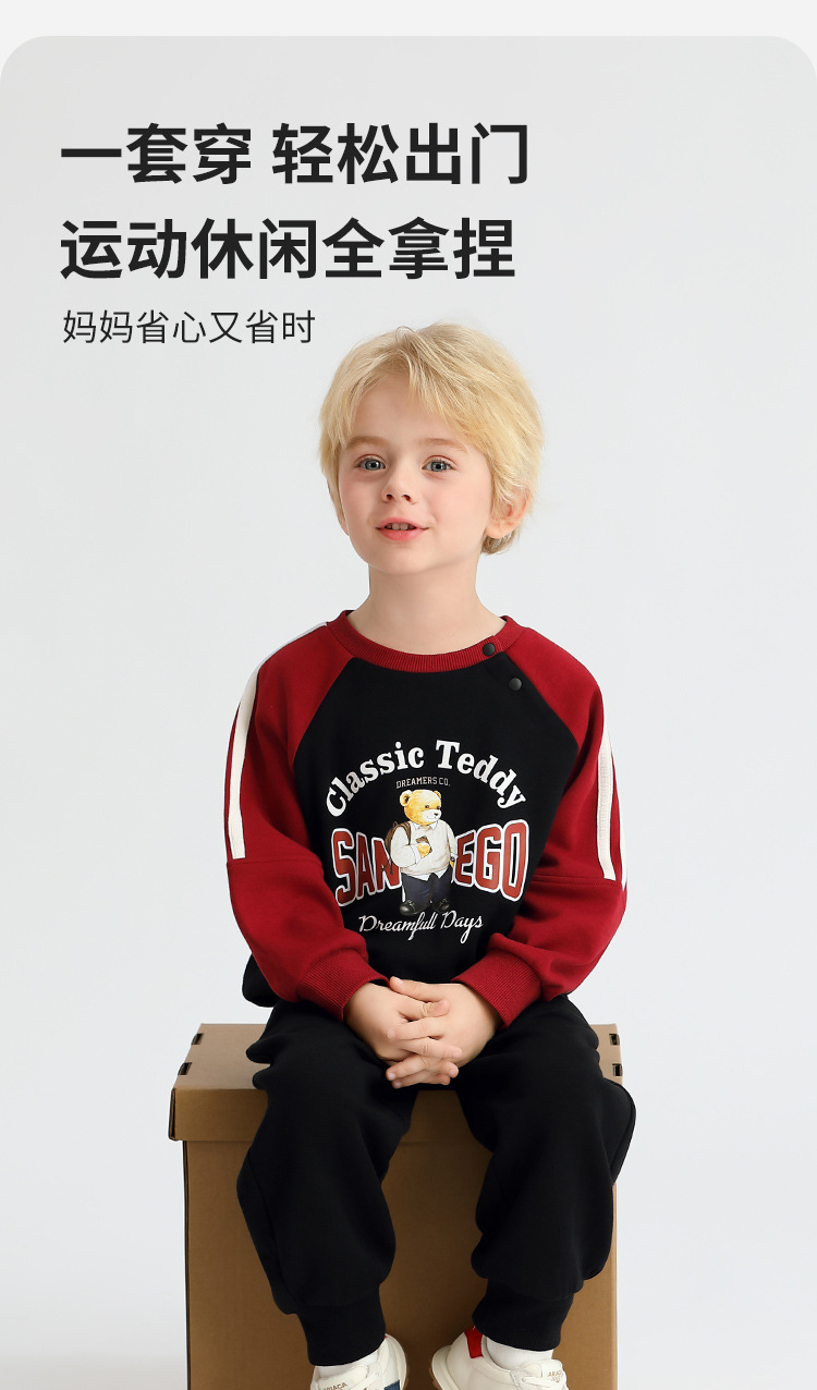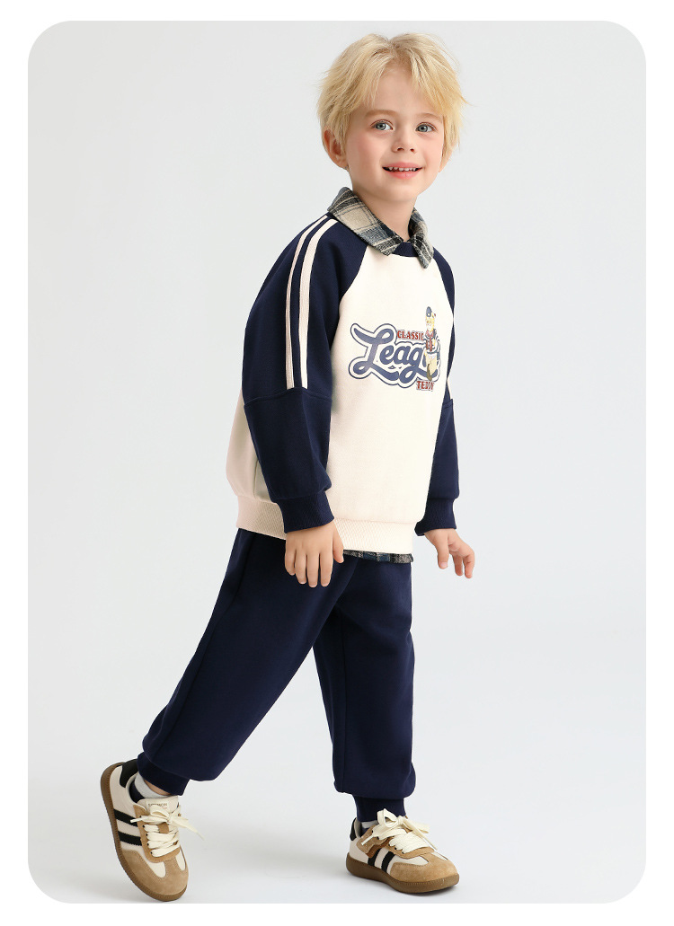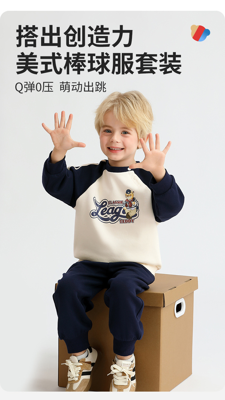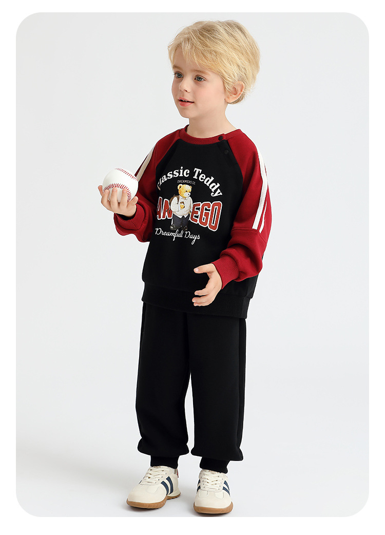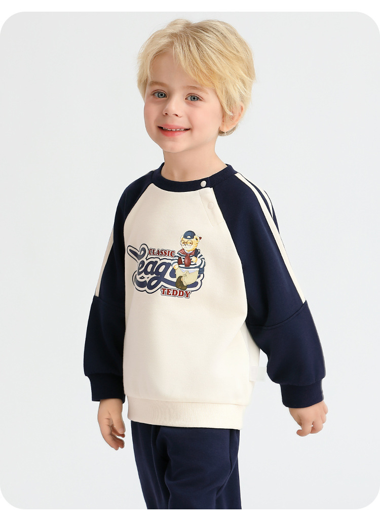 클래식 테디 봄 소년 야구 세트 세트 어린이 대학 스타일 착용 중소 어린이 스웨트 셔츠 투피스 세트스토어 가기