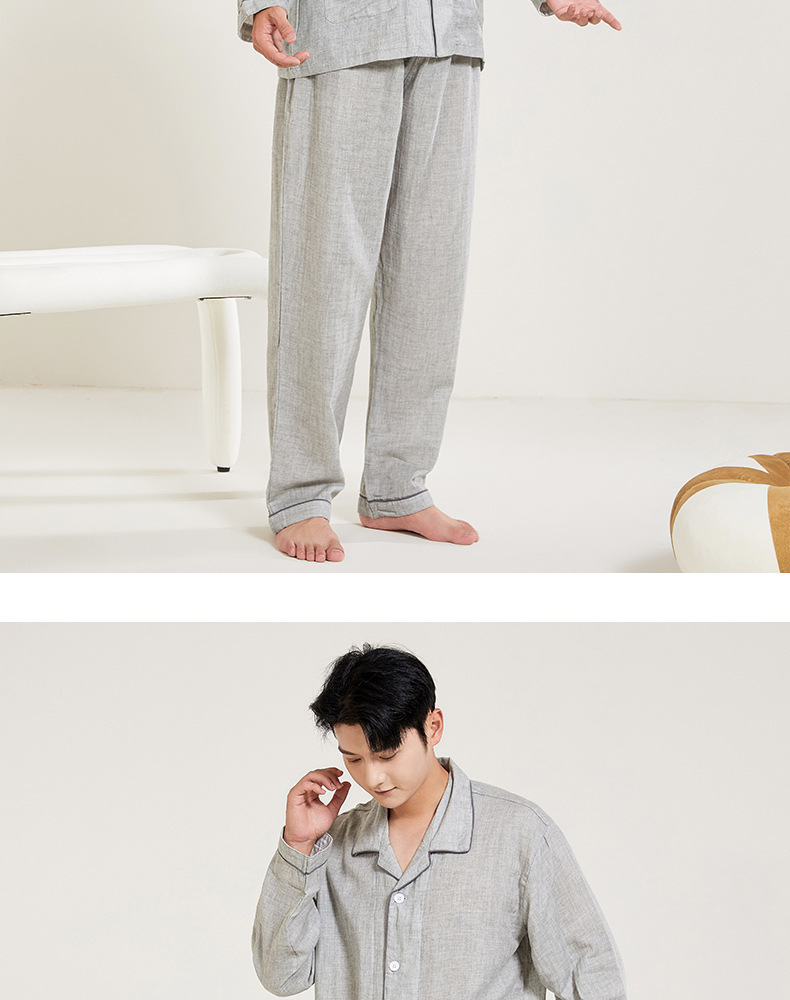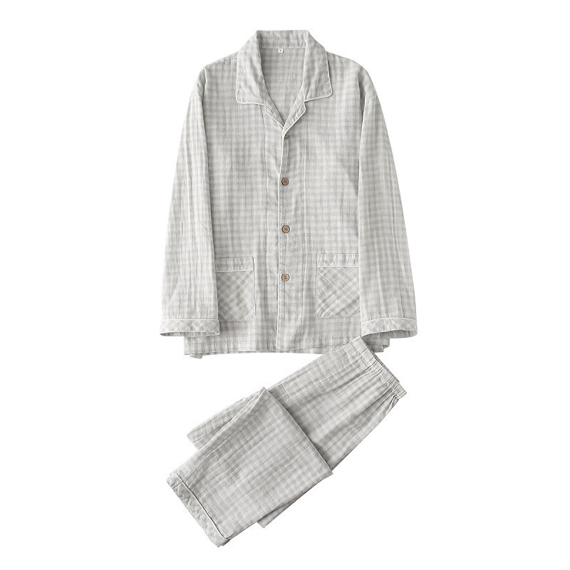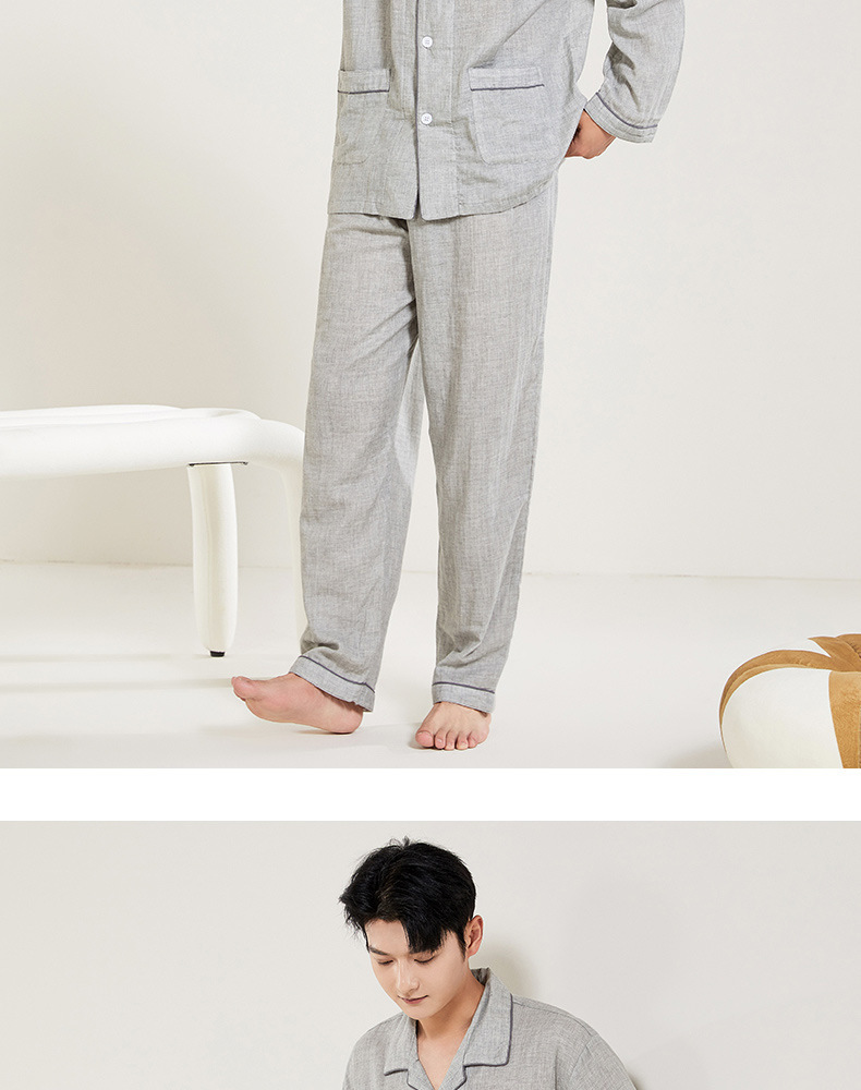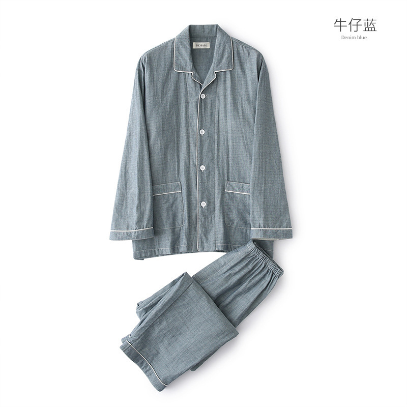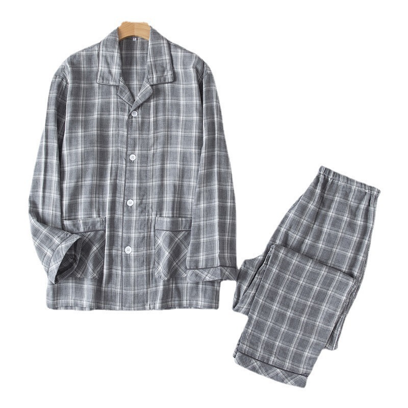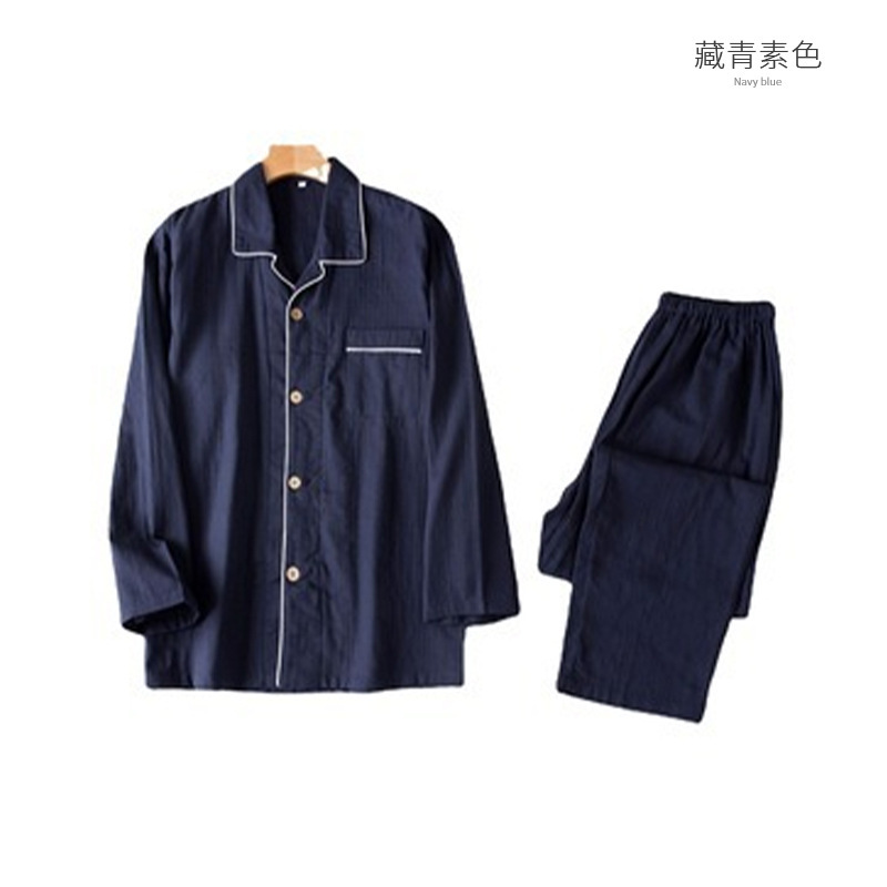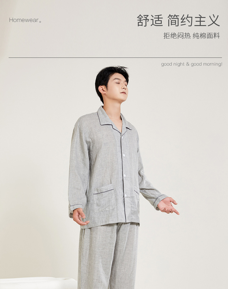 봄과 가을 남성면 긴팔 잠옷 세트 새 긴팔 일반 더블 레이어 거즈 외출 홈 의류