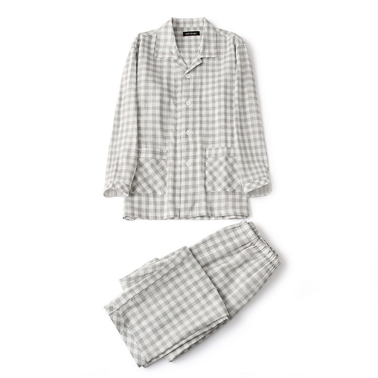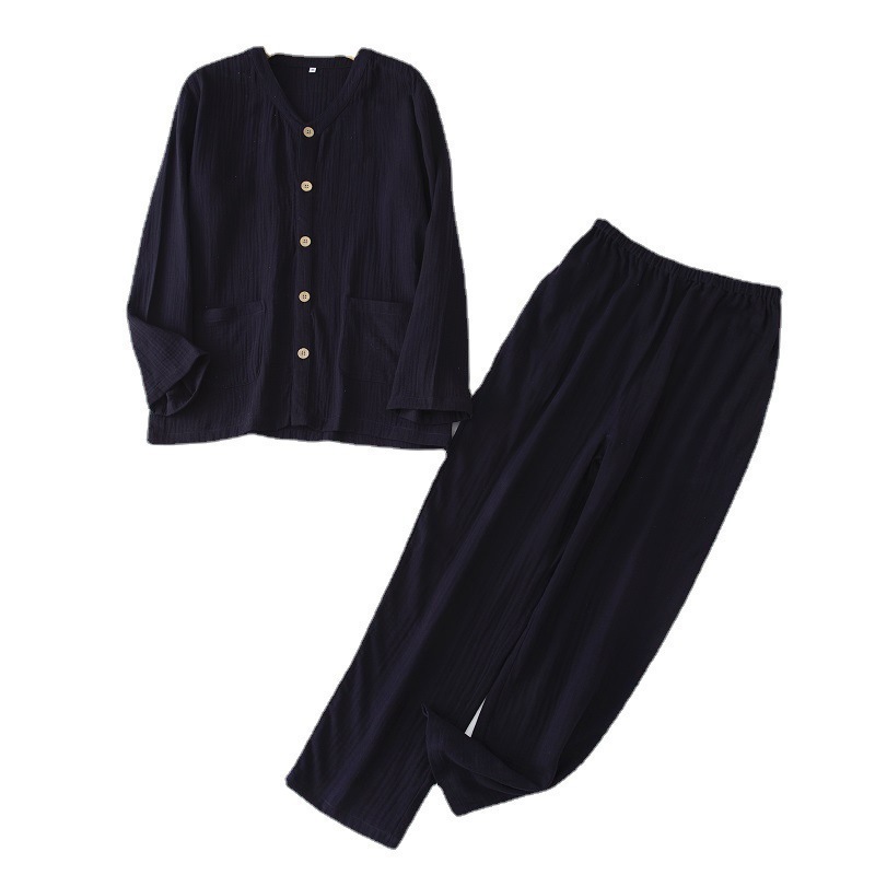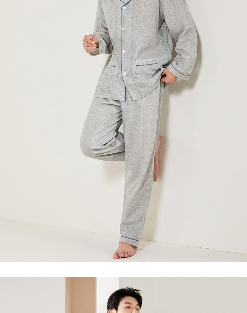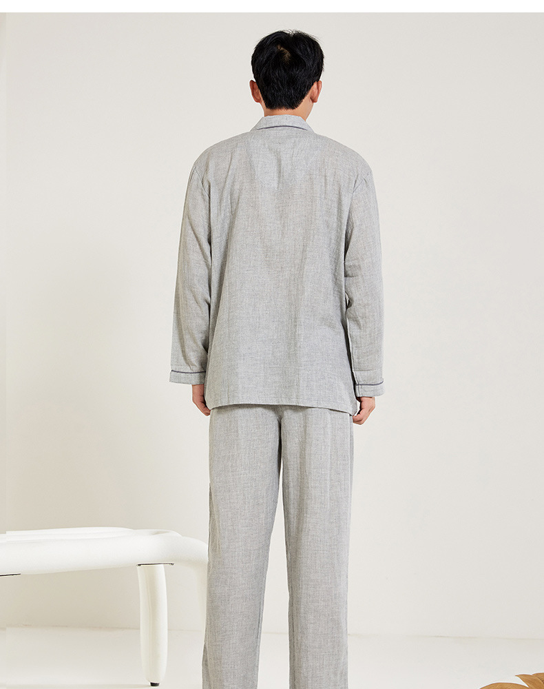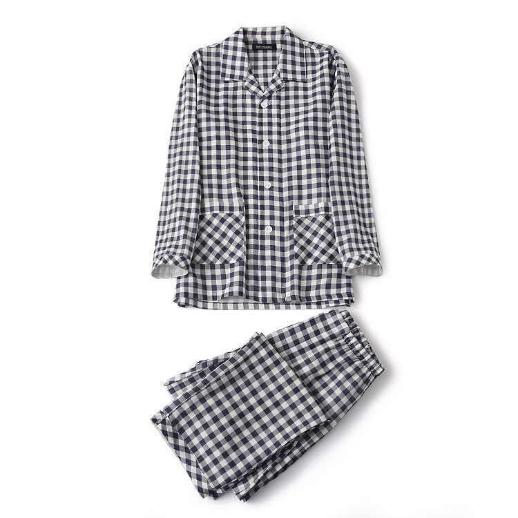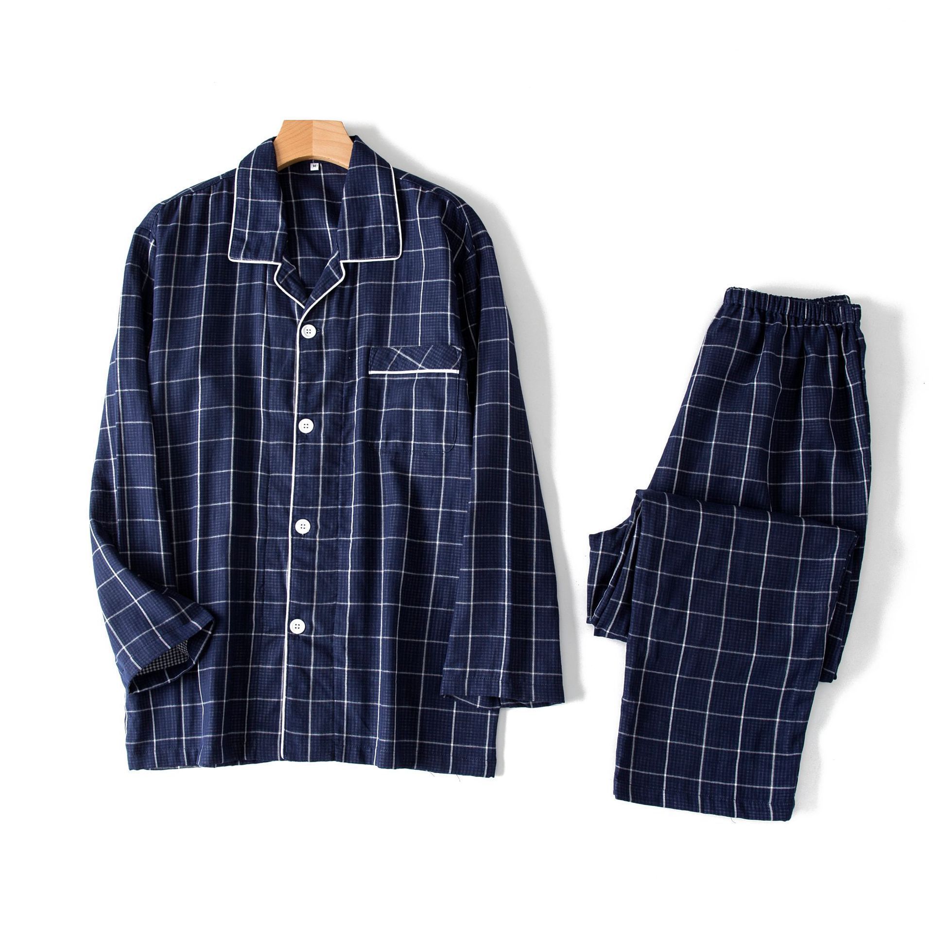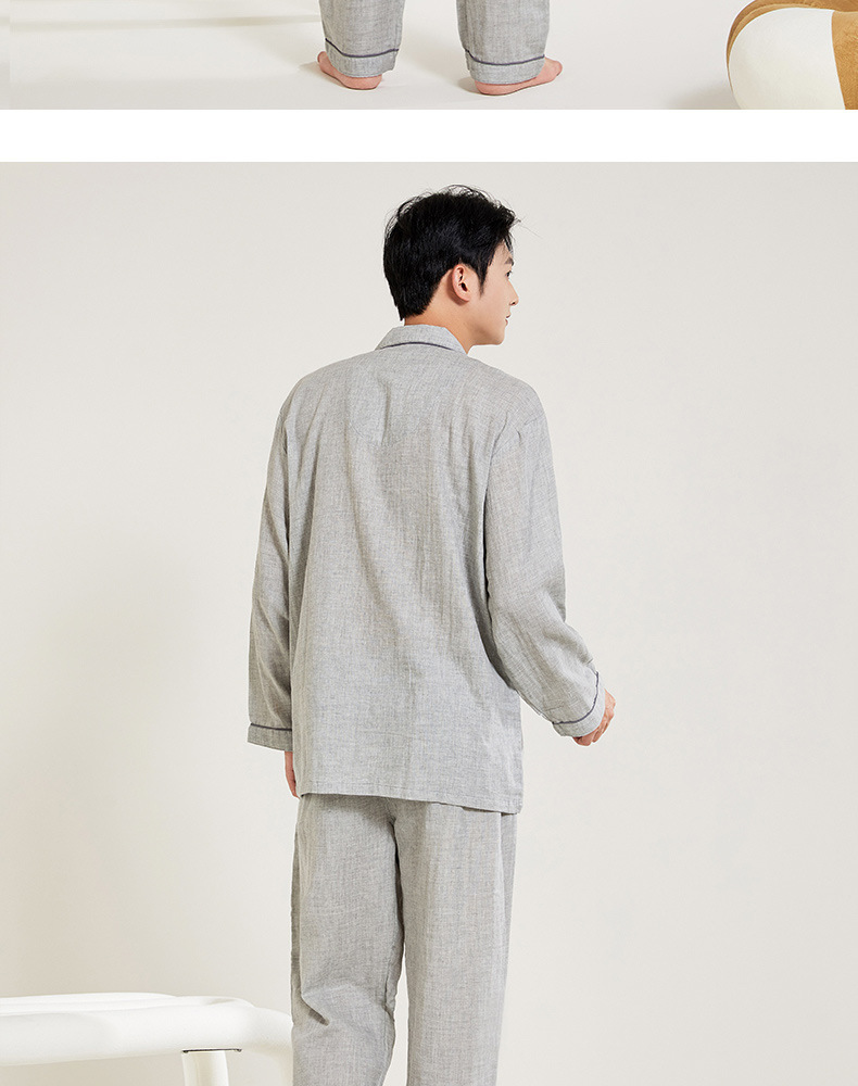 봄과 가을 남성면 긴팔 잠옷 세트 새 긴팔 일반 더블 레이어 거즈 외출 홈 의류