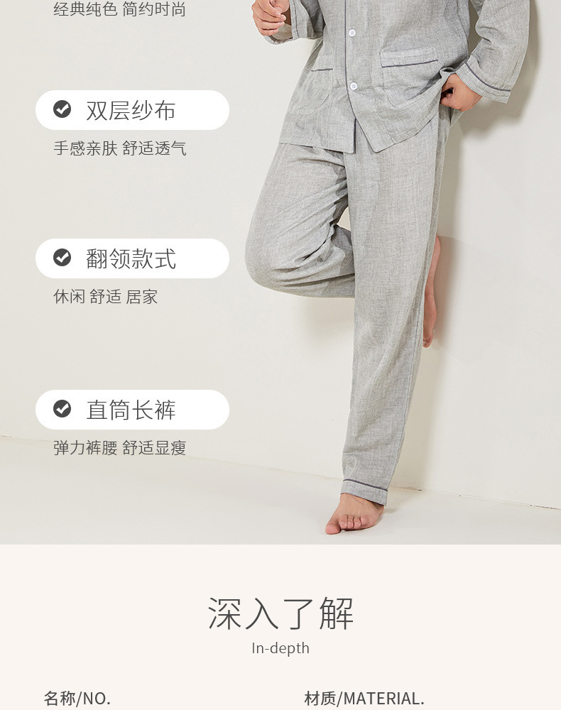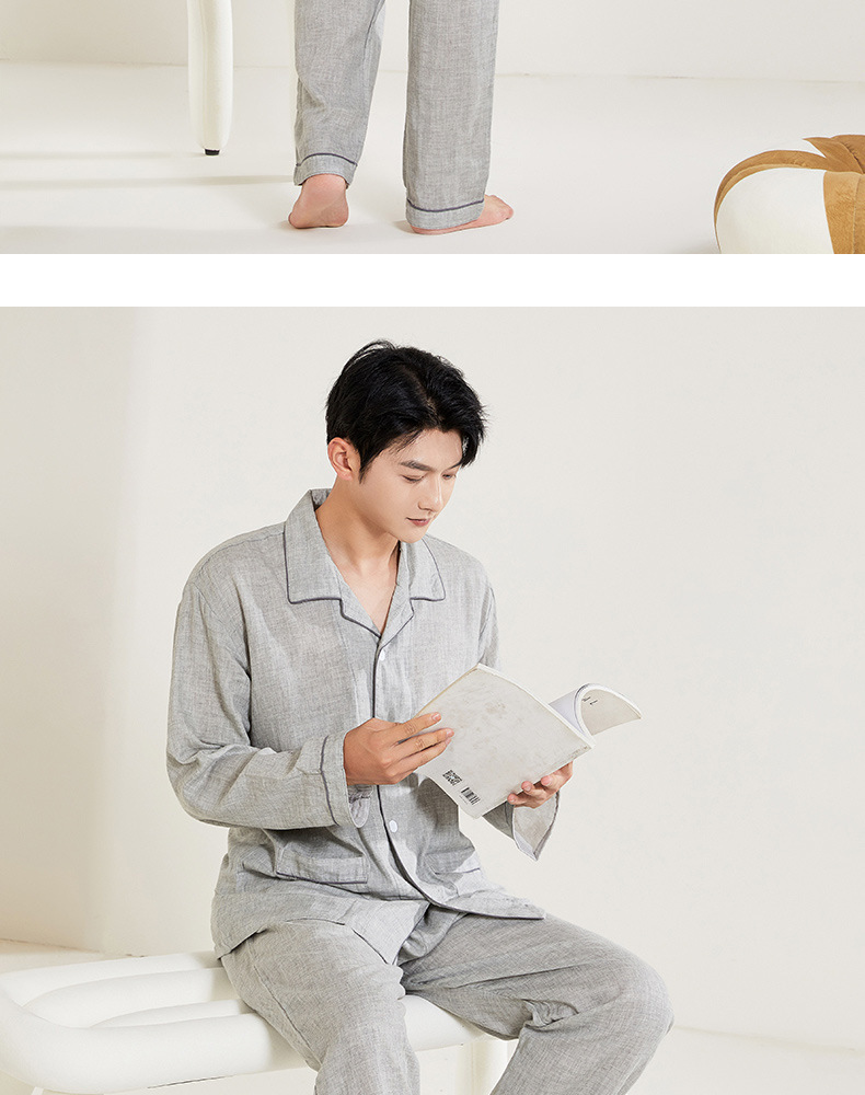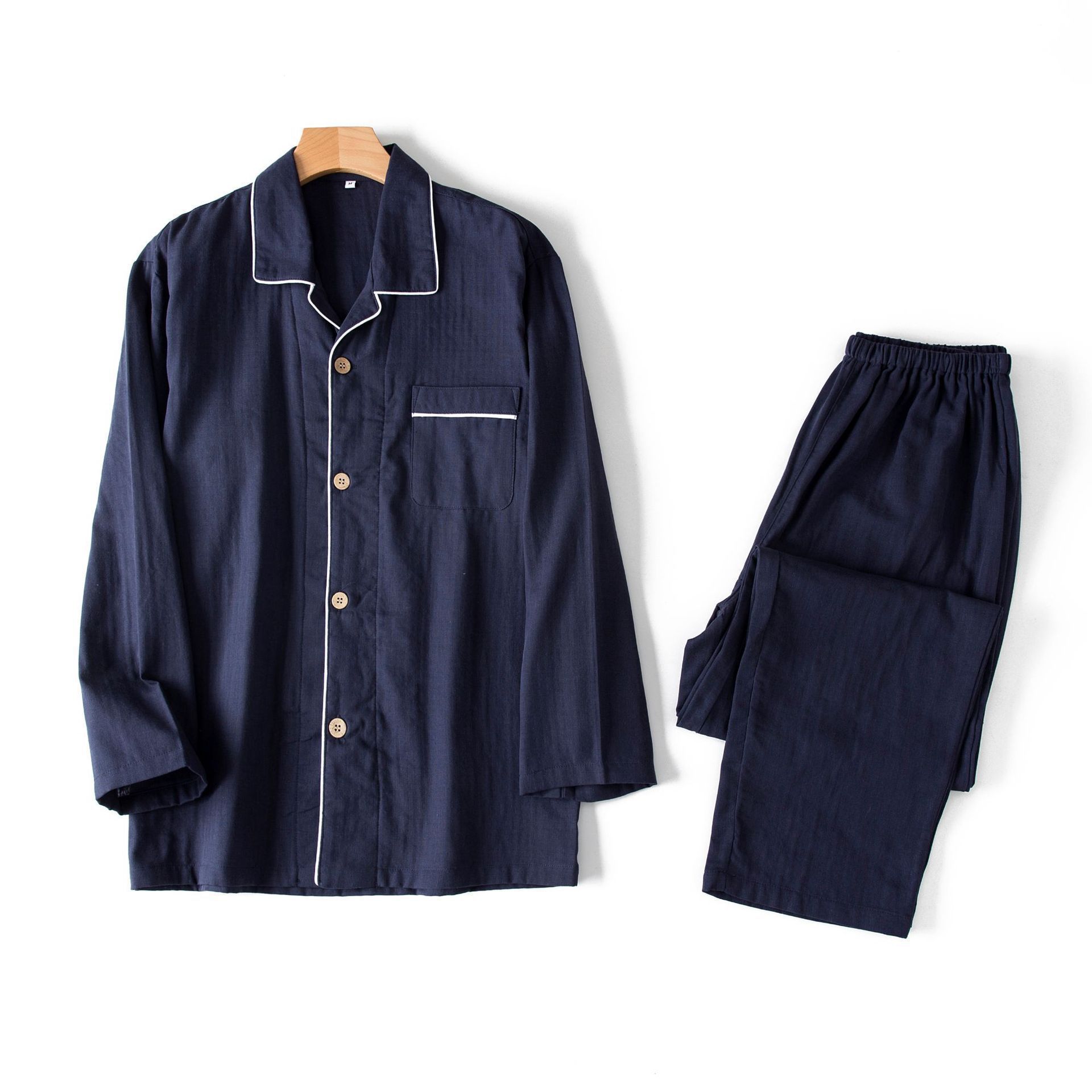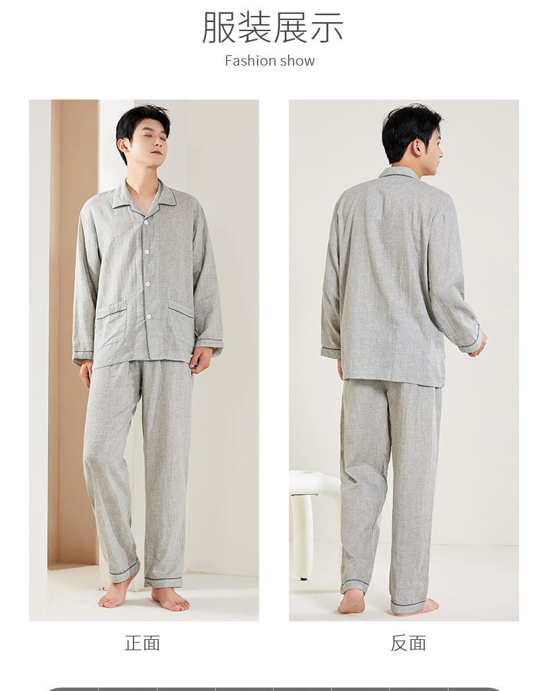 봄과 가을 남성면 긴팔 잠옷 세트 새 긴팔 일반 더블 레이어 거즈 외출 홈 의류스토어 가기