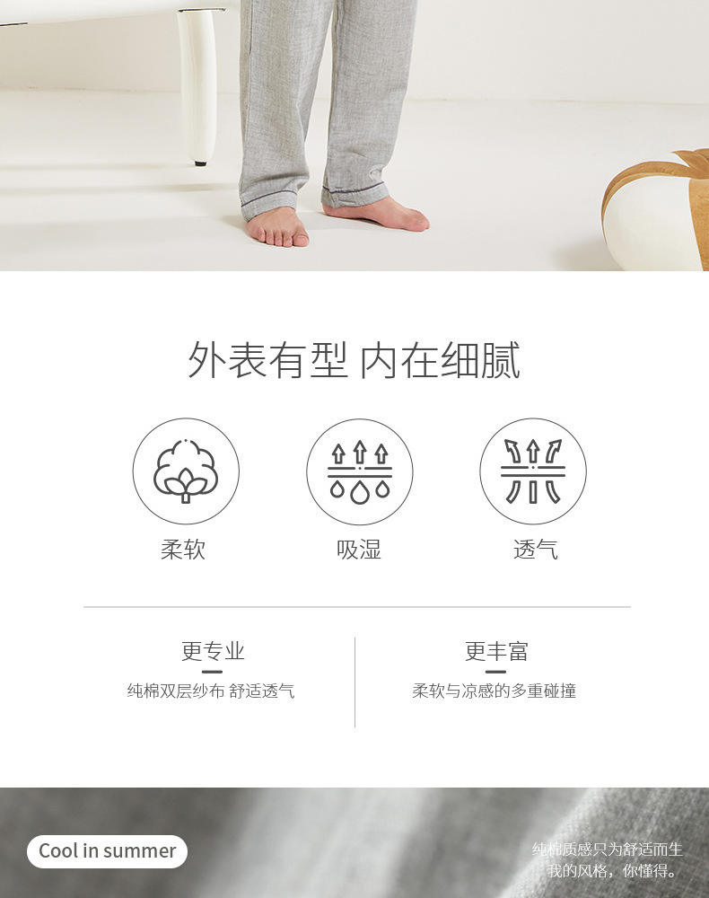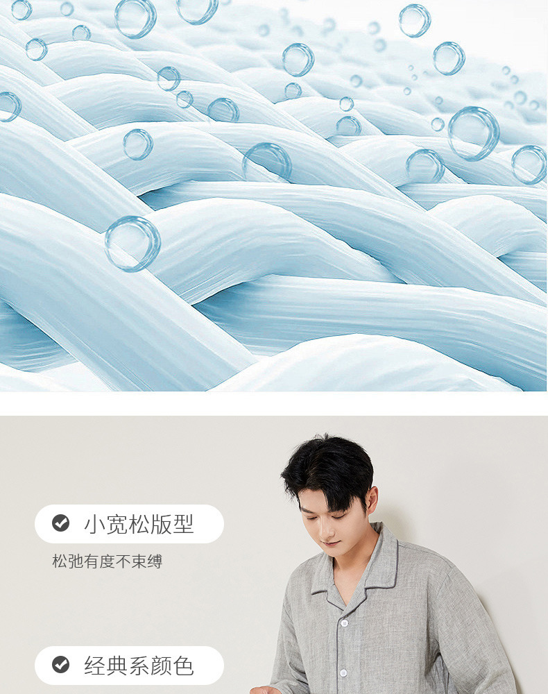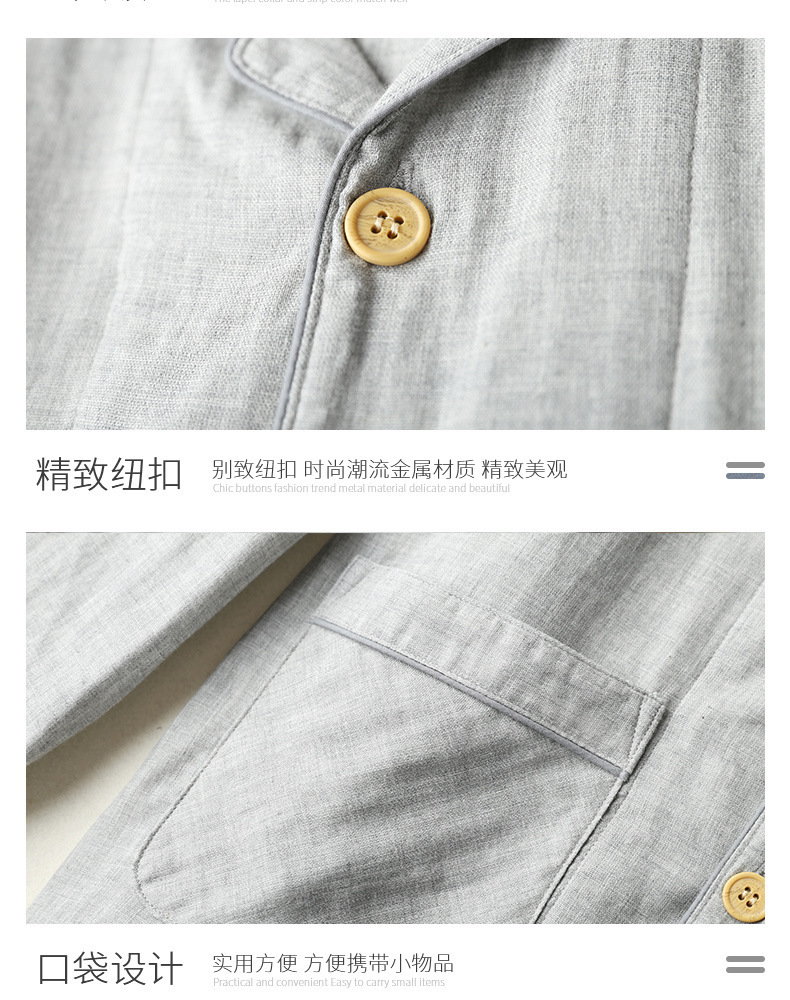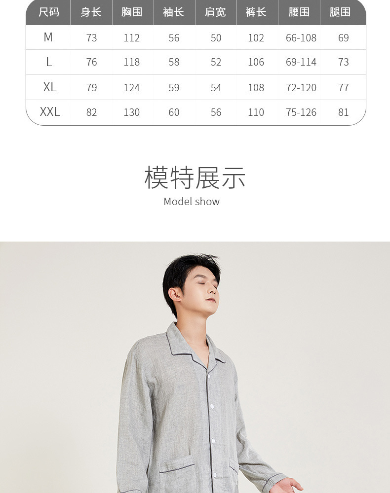 봄과 가을 남성면 긴팔 잠옷 세트 새 긴팔 일반 더블 레이어 거즈 외출 홈 의류스토어 가기