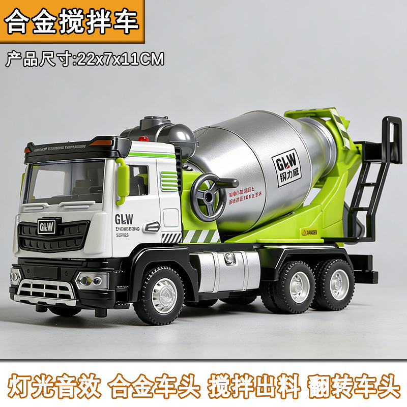 • 녹색 합금 믹서 트럭 (사운드 & 라이트 기능) 컬러 박스 포장, 560g