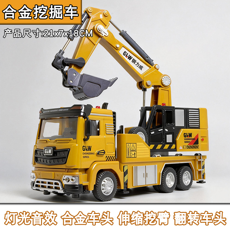• 노란색 합금 굴삭기(소리 및 조명 기능) 색상 상자 포장 680g