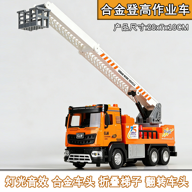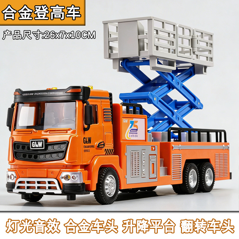 • 주황색 합금 고소 작업차 (사운드 & 라이트 기능) 컬러 박스 포장, 560g