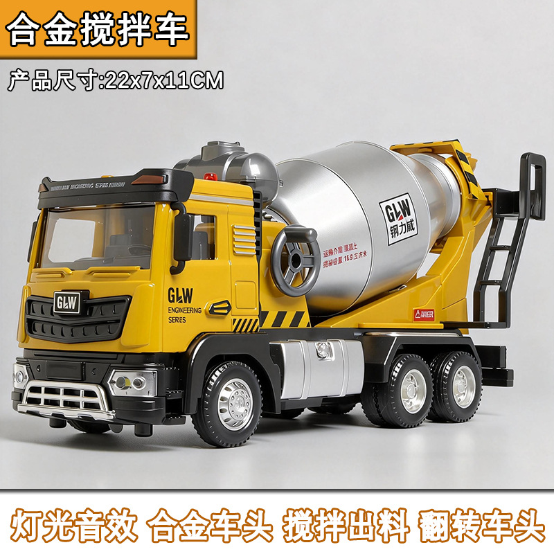 • 노란색 합금 믹서 트럭 (사운드 & 라이트 기능) 컬러 박스 포장, 560g