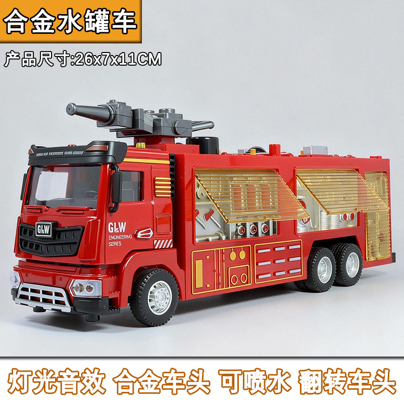 • 소방 합금 스프레이 트럭 (사운드 & 라이트 기능) 칼라 박스 포장, 600g