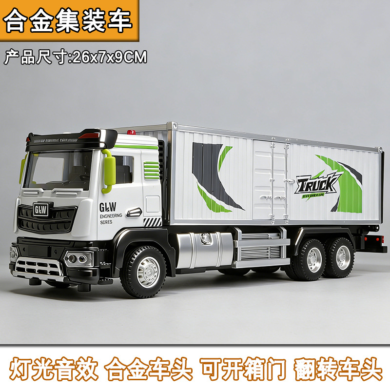 • 흰색 합금 컨테이너 트럭 (사운드 & 라이트 기능) 컬러 박스 포장, 580g