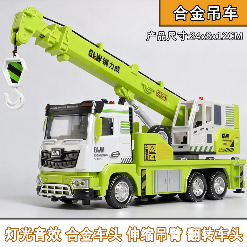 • 녹색 합금 크레인 (사운드 & 라이트 기능) 컬러 박스 포장, 560g