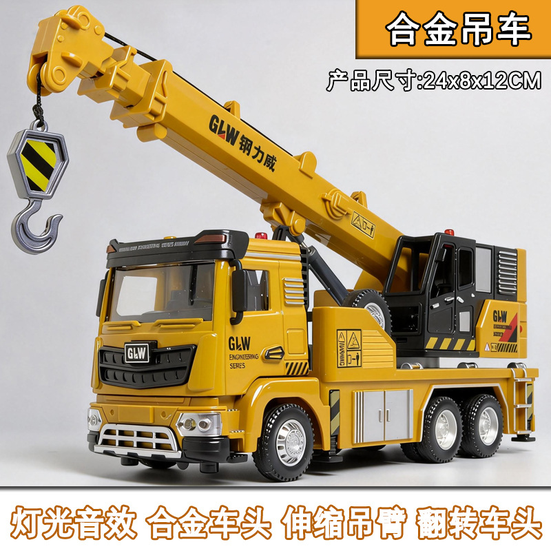 • 노란색 합금 크레인 (사운드 & 라이트 기능) 컬러 박스 포장, 560g