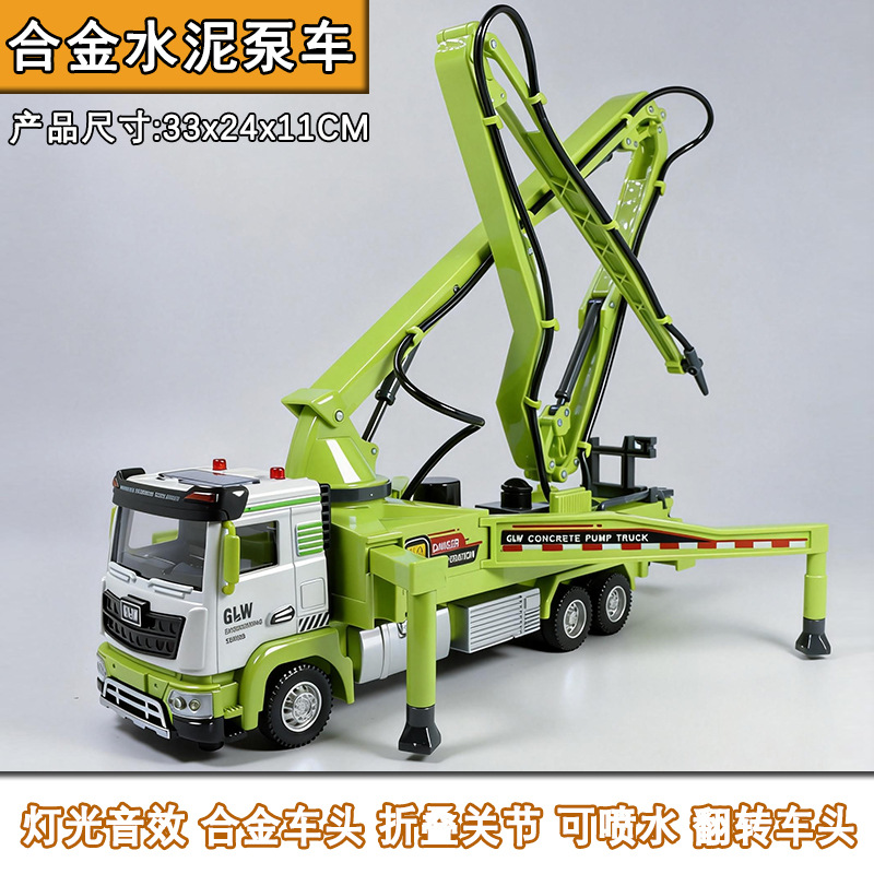• 녹색 합금 시멘트 펌프 트럭 (사운드 & 라이트 기능) 컬러 박스 포장, 690g