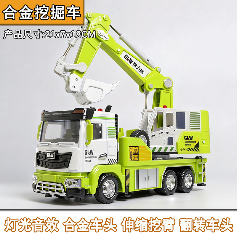 • 녹색 합금 굴삭기(소리 및 조명 기능) 색상 상자 포장 680g