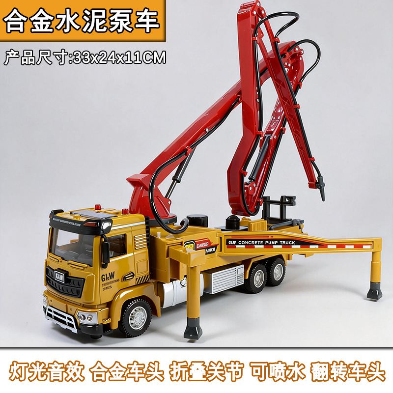 • 노란색 합금 시멘트 펌프카 (사운드 & 라이트 기능) 컬러 박스 포장, 690g
