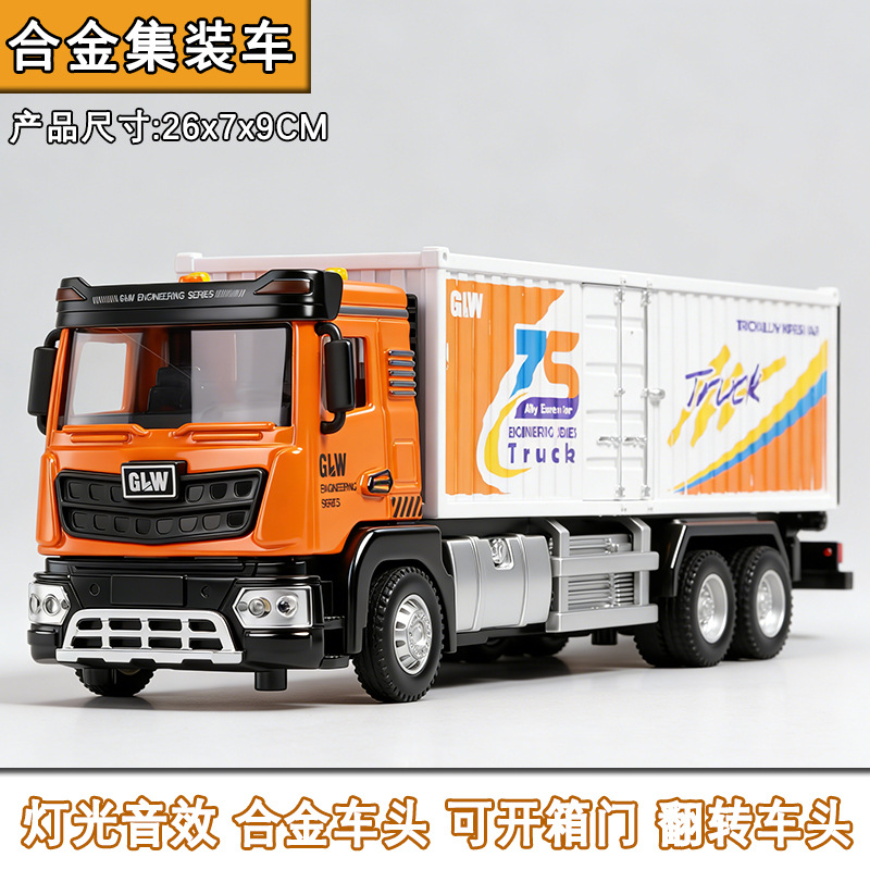 • 주황색 합금 컨테이너 트럭 (사운드 & 라이트 기능) 컬러 박스 포장, 580g