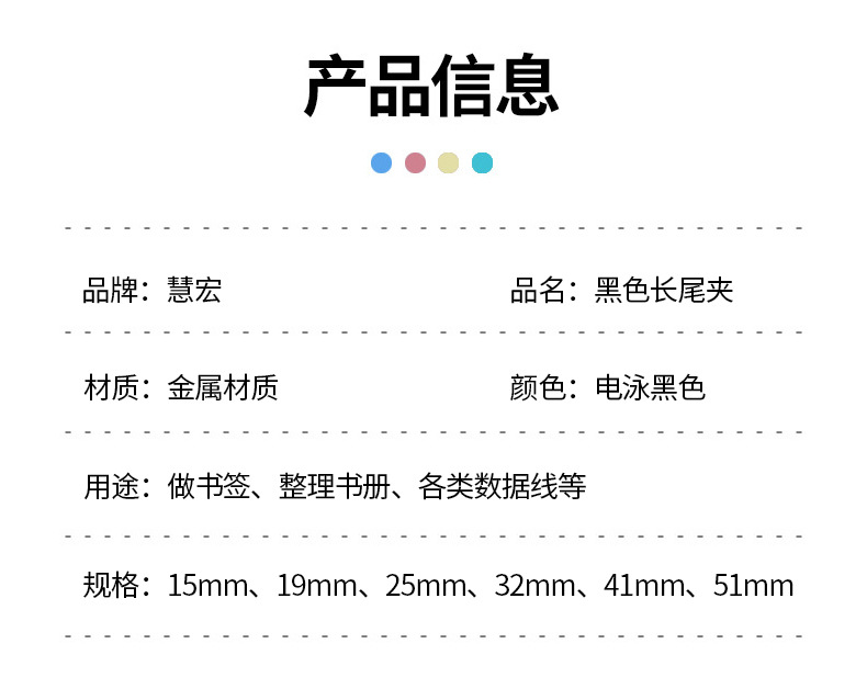 검은 색 긴 꼬리 클립 지폐 폴더 사무실 문구 바인딩 폴더 dovetail 클립 큰 드로잉 보드 고정 클립 51MM스토어 가기