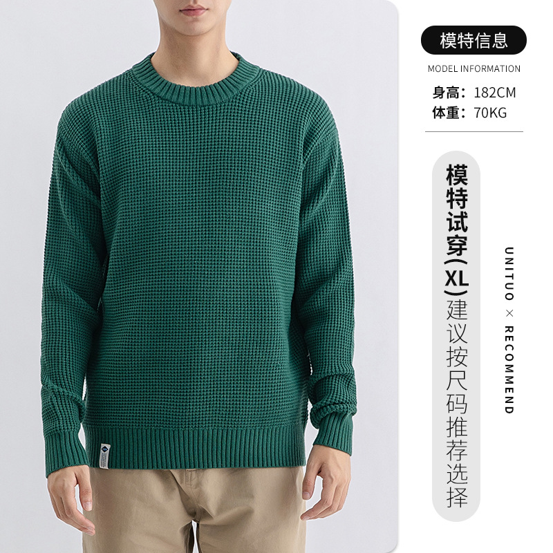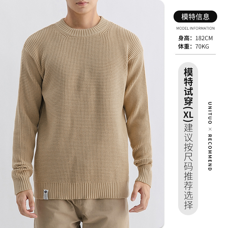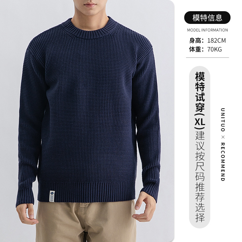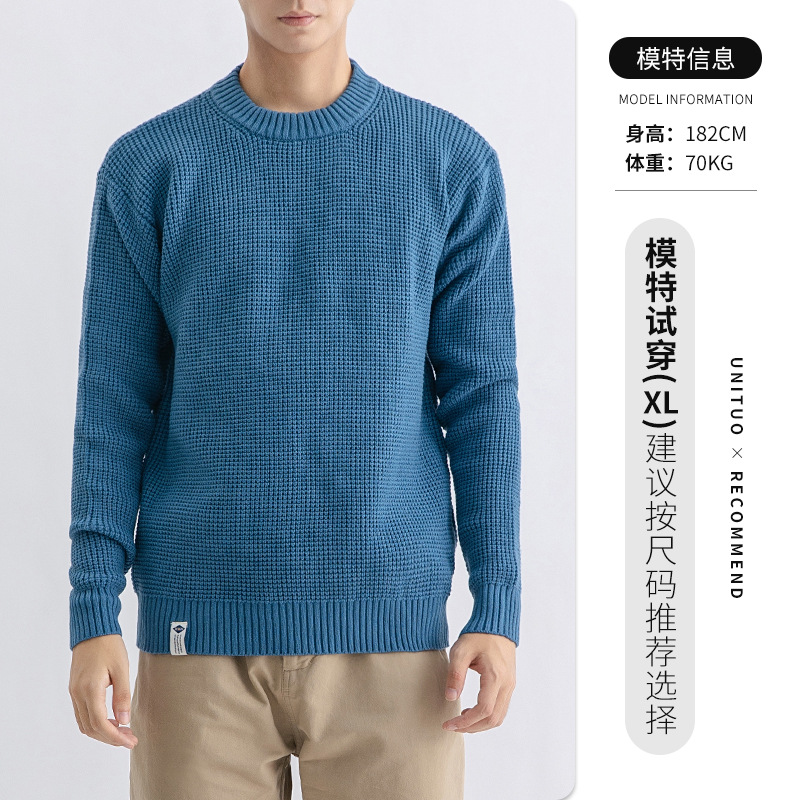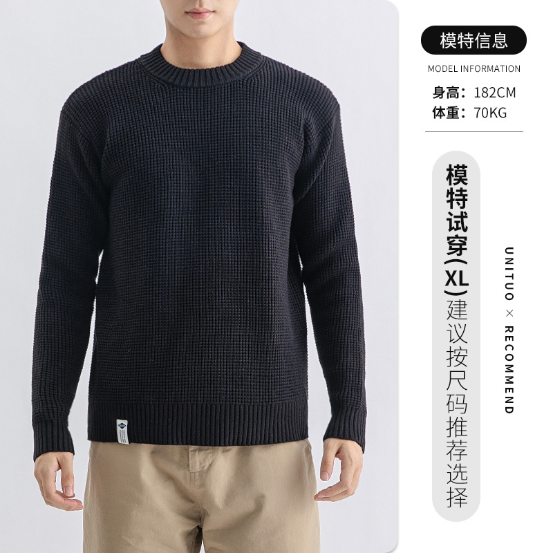 하이 퀄리티 간단한 두꺼운 바늘 스웨터 남자의 가을과 겨울 기본 단색 느슨한 둥근 목 니트 스웨터 재킷스토어 가기