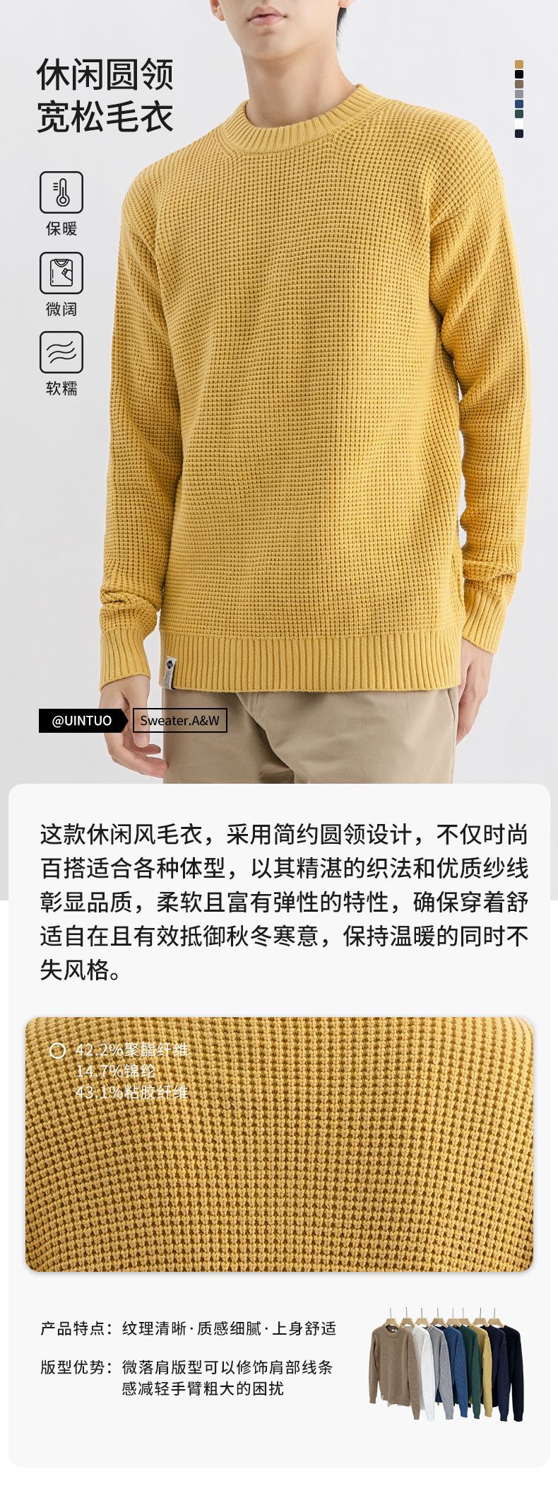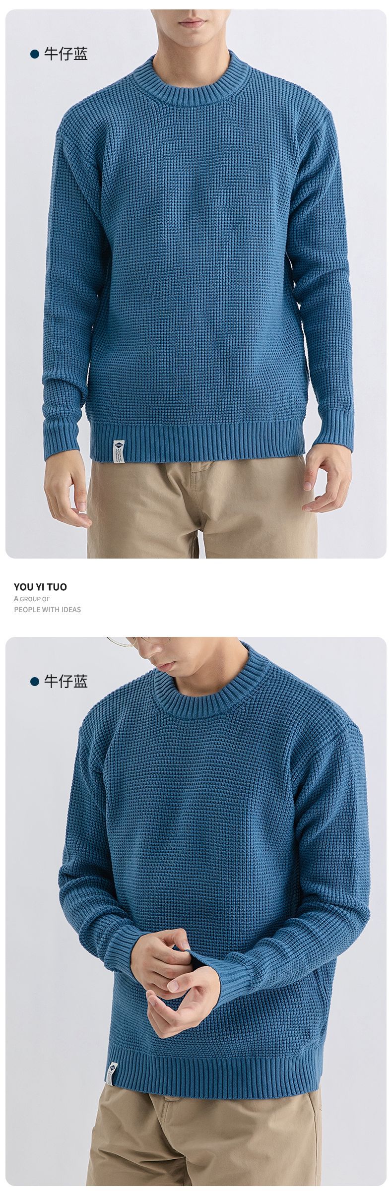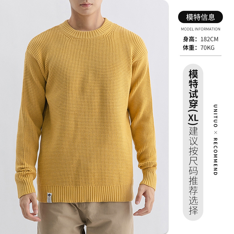 하이 퀄리티 간단한 두꺼운 바늘 스웨터 남자의 가을과 겨울 기본 단색 느슨한 둥근 목 니트 스웨터 재킷스토어 가기