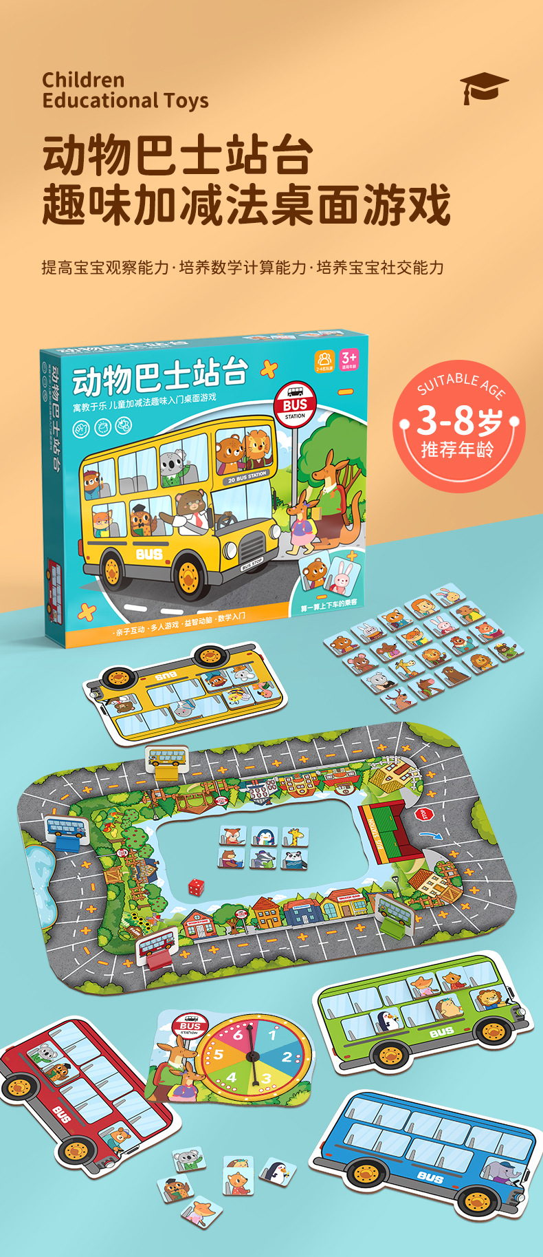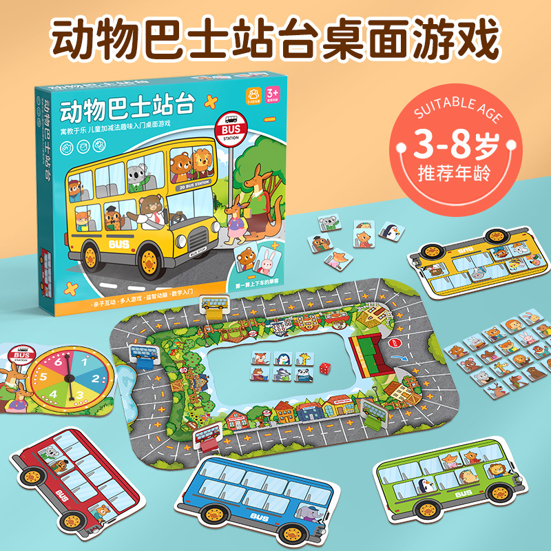 동물 버스 플랫폼 보드 게임 어린이 교육 게임 재미있는 어린이 다기능 부모-어린이 만화 데스크탑 장난감스토어 가기