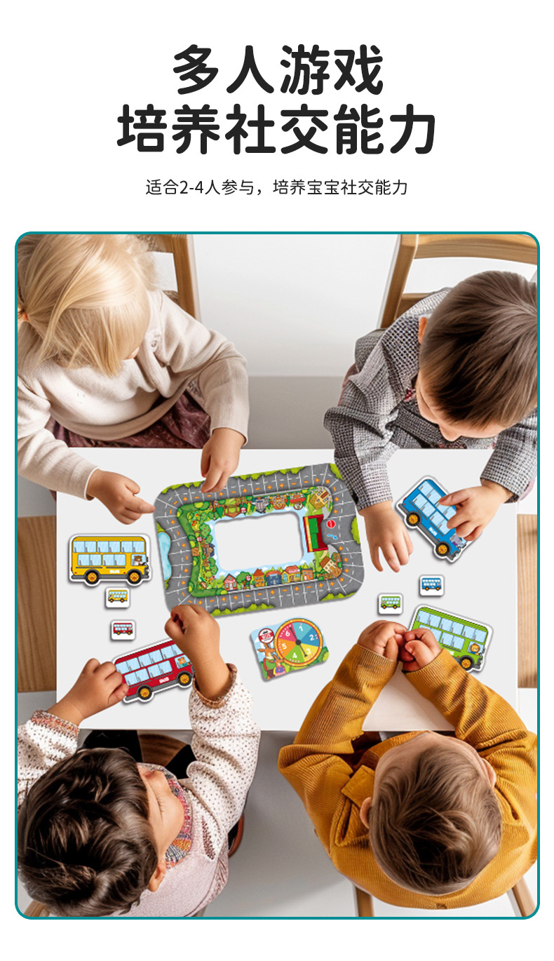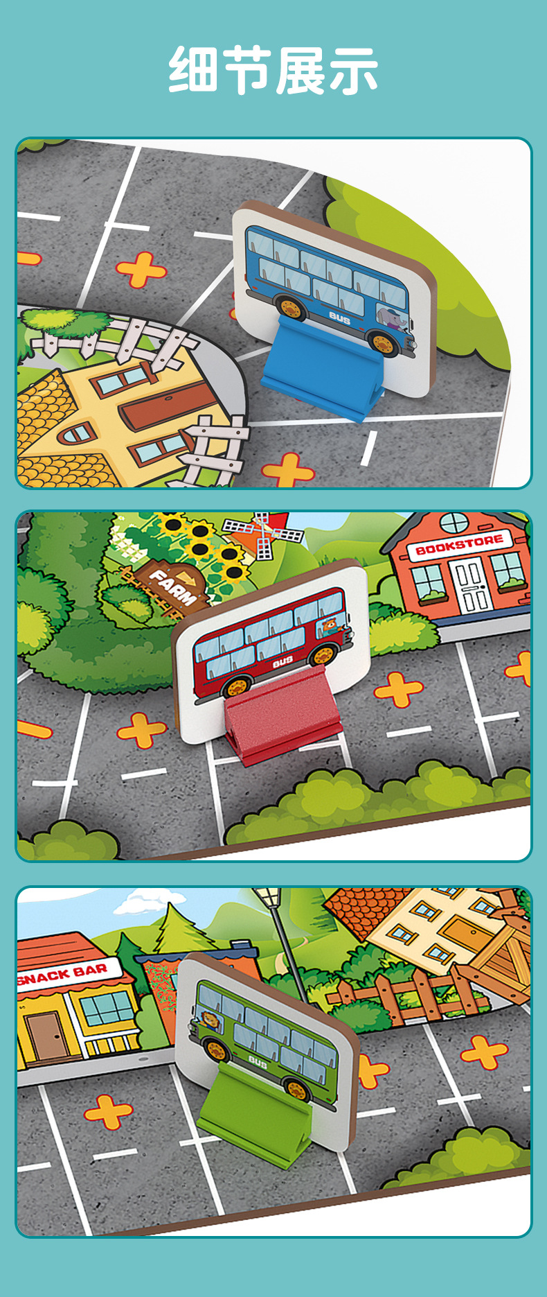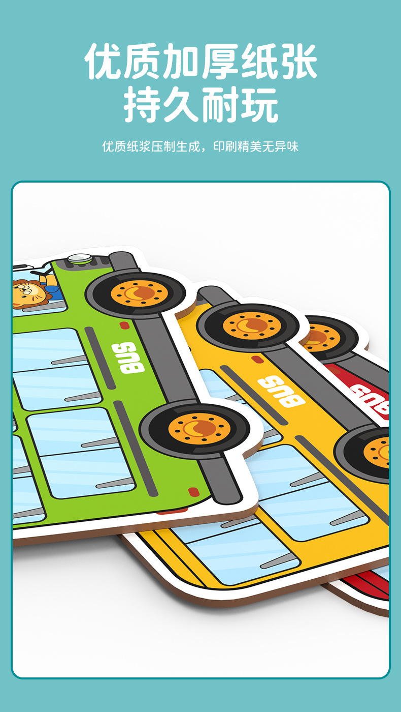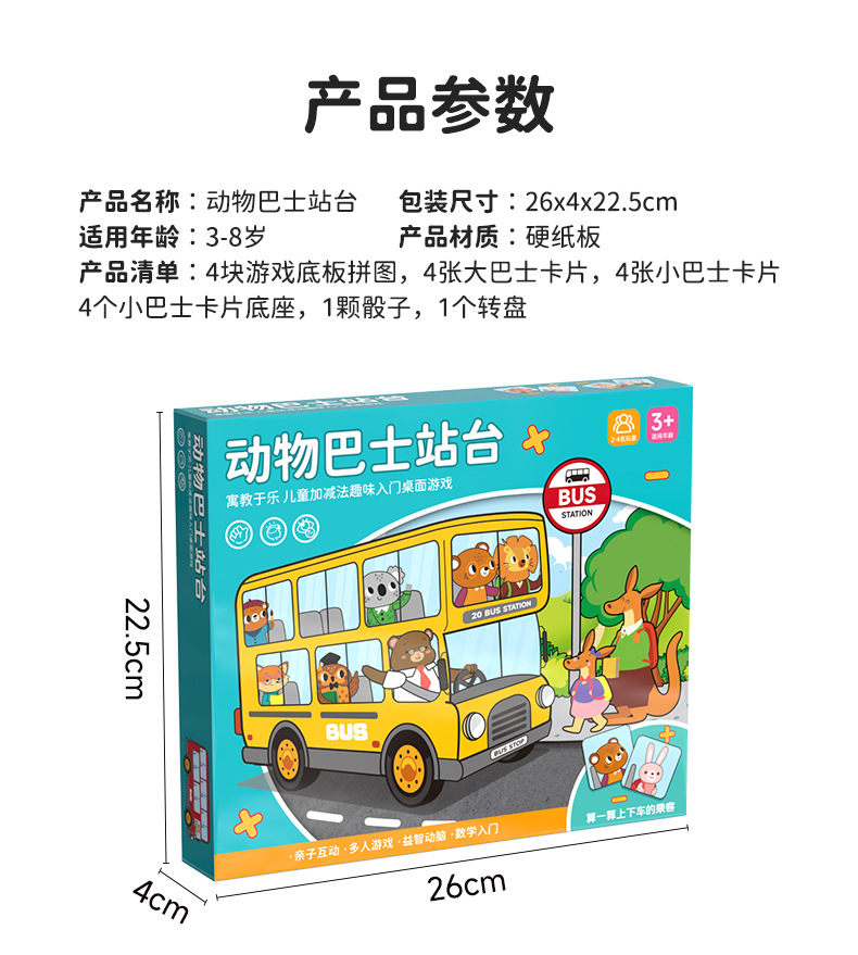 • 동물 버스 플랫폼 [퍼즐 4개 + 카드 12개 + 주사위 1개 + 턴테이블 1개] 중국 색상 상자