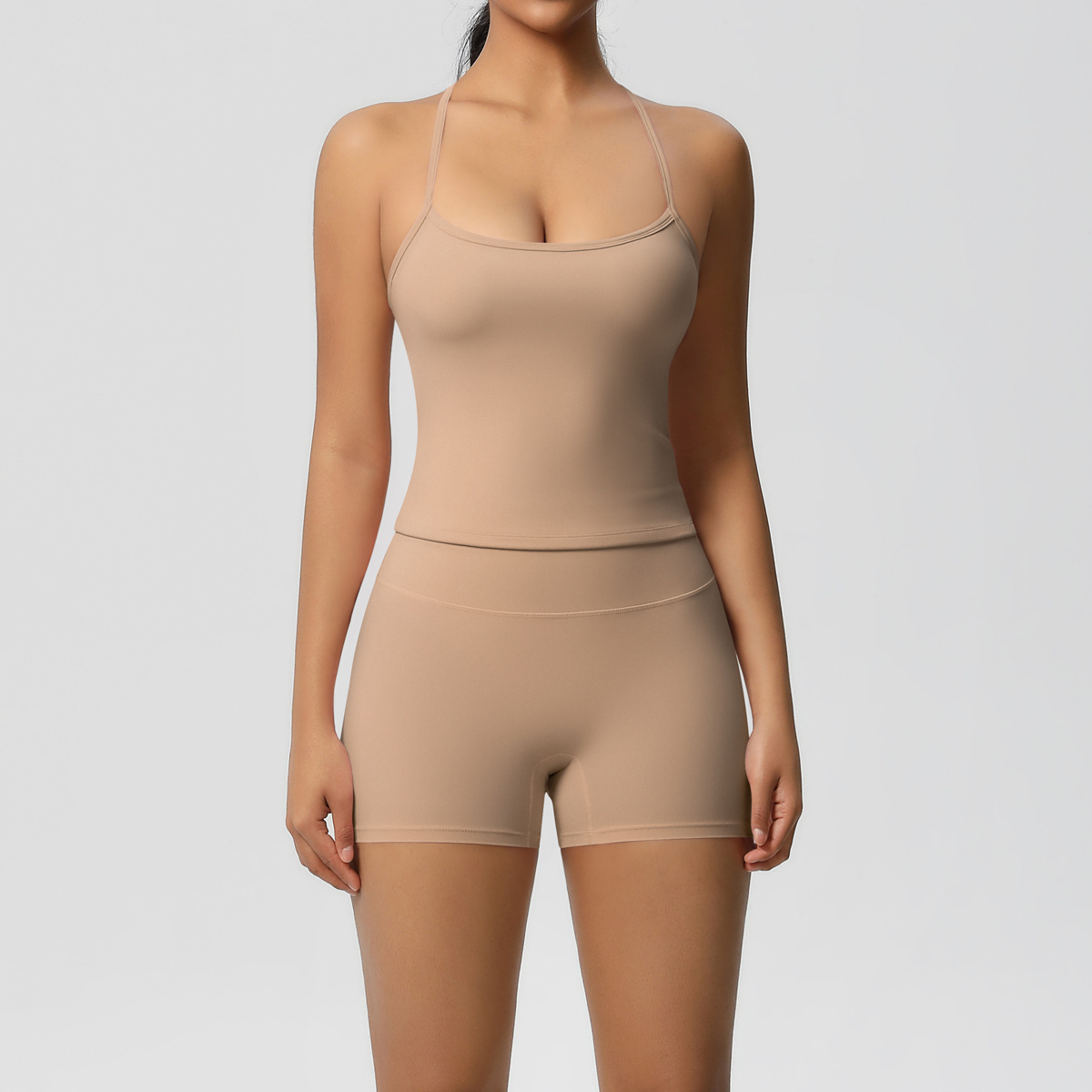 • 7107 조끼 + 7101 반바지 세트 - 카멜 브라운