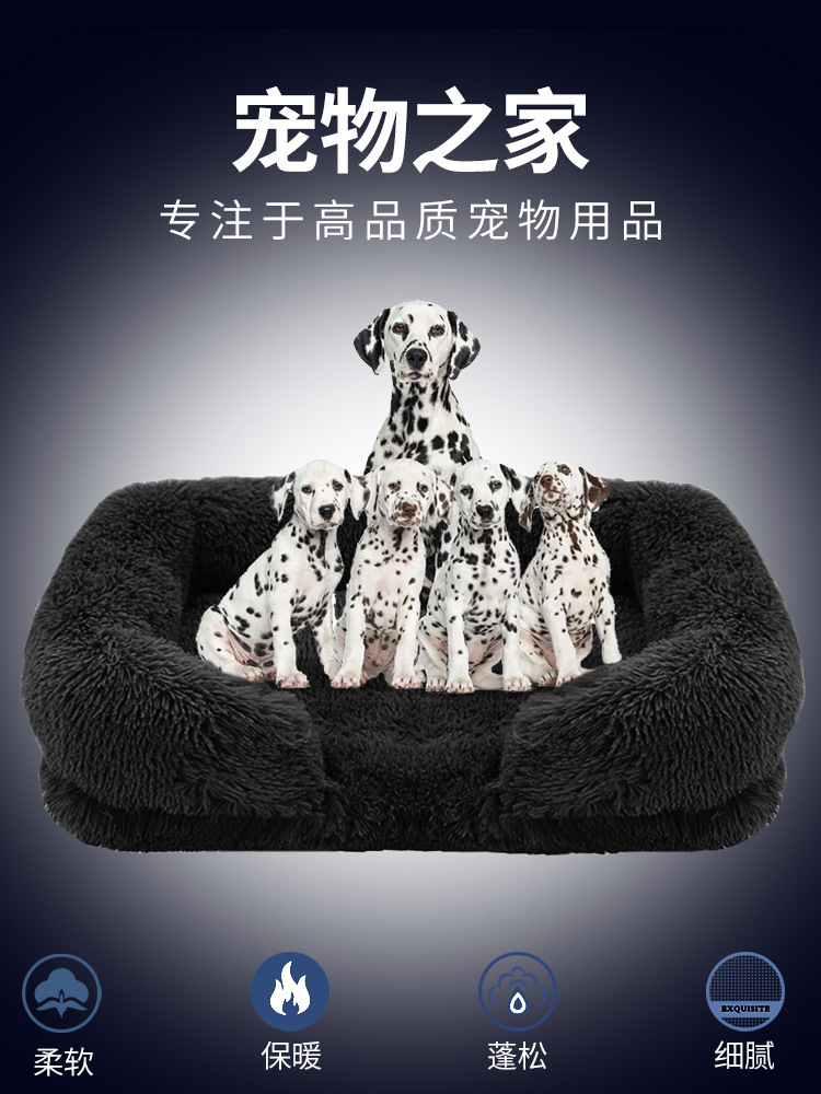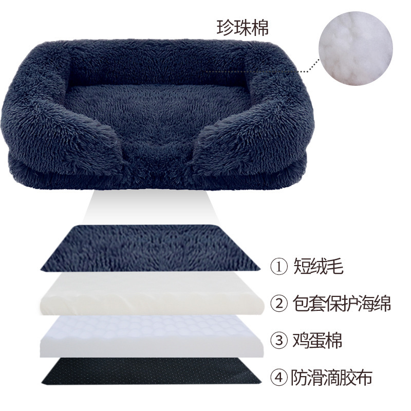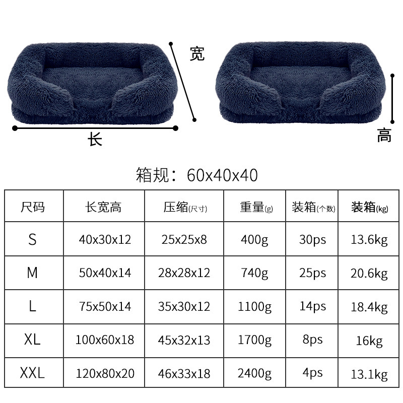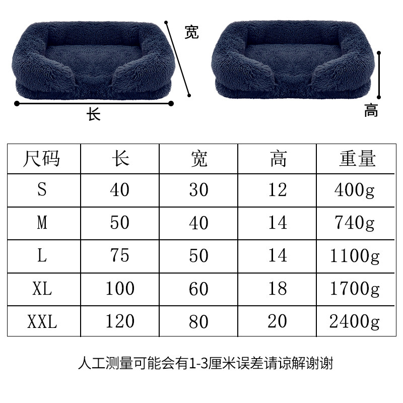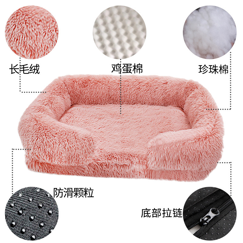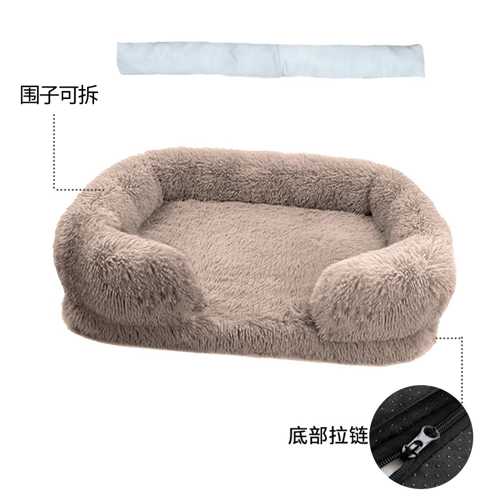 플러시 천으로 된 사각형 애완동물 소파, 개집, 고양이집, 탈부착 및 세탁 가능, 겨울철 따뜻하고 편안한 애완동물 침대, 애완용품스토어 가기