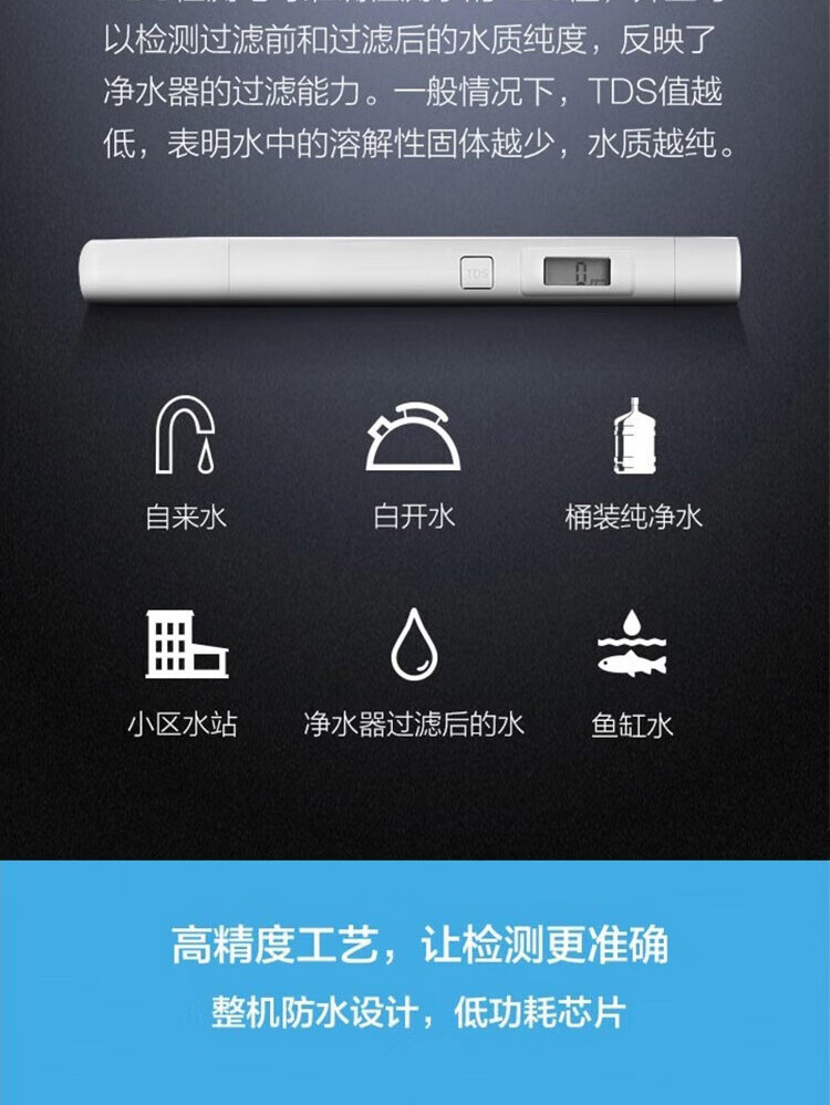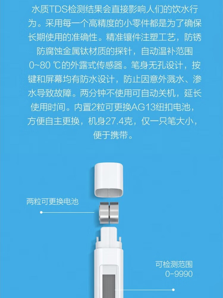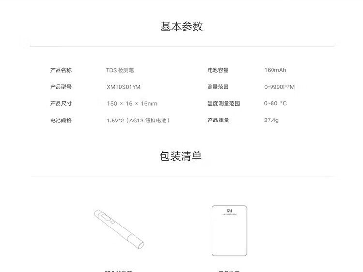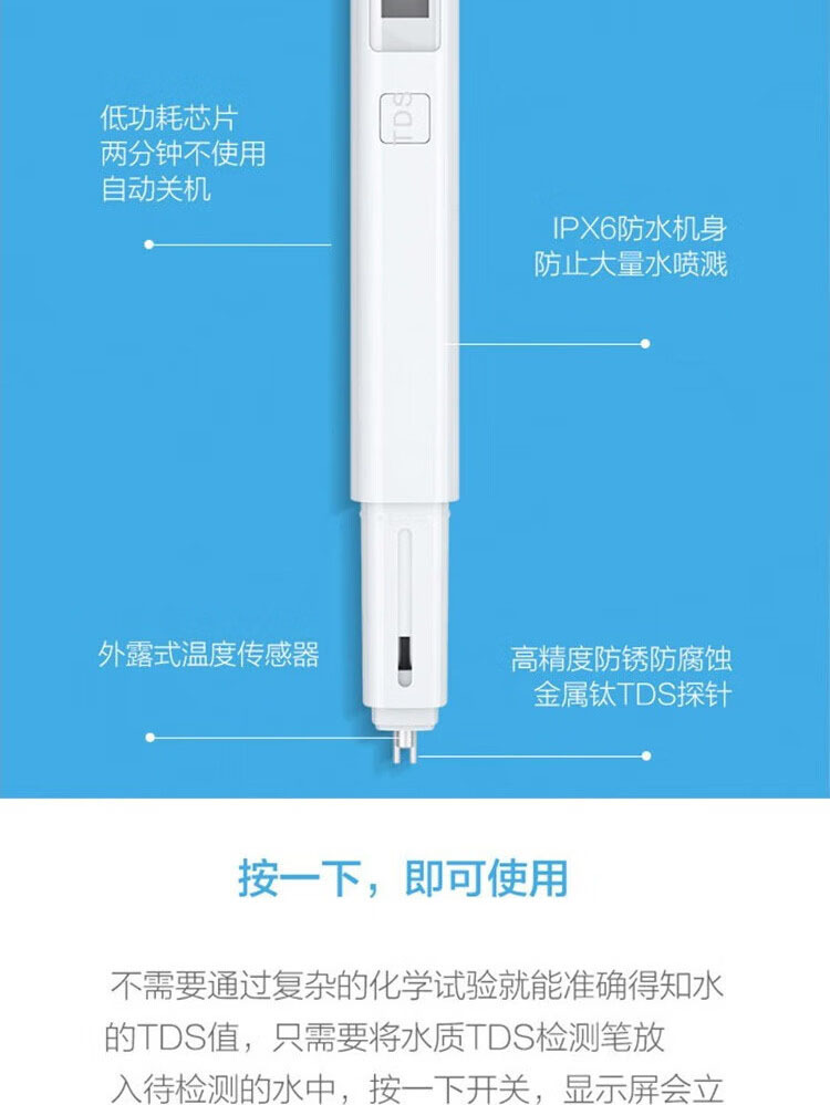 Xiao Mi의 수질 TDS 테스트 펜은 그의 집에서 수질의 순도를 정확하게 모니터링하고 그의 가족이 휴식 물을 마시도록합니다.스토어 가기