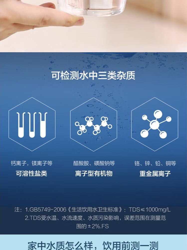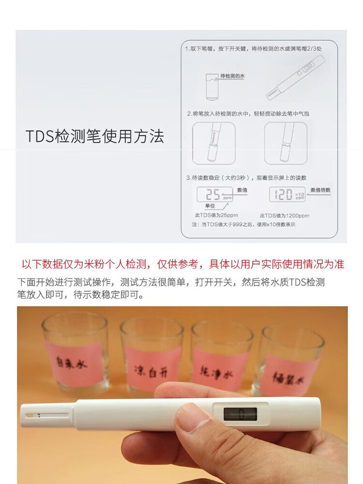 Xiao Mi의 수질 TDS 테스트 펜은 그의 집에서 수질의 순도를 정확하게 모니터링하고 그의 가족이 휴식 물을 마시도록합니다.