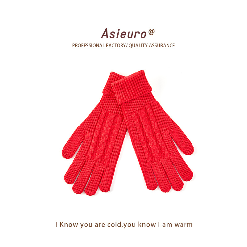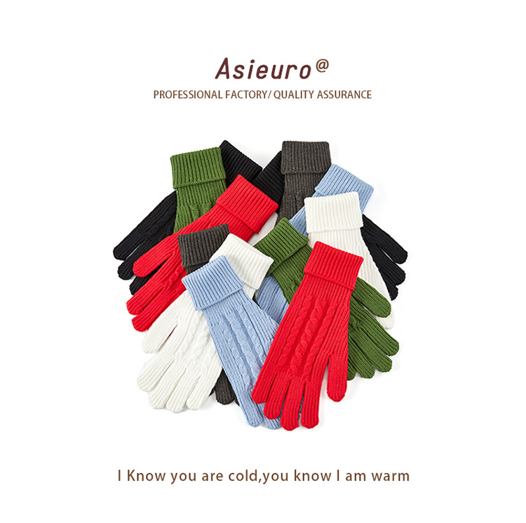 국경 간 유럽과 미국의 가을 겨울 장갑 솔리드 컬러 트위스트 따뜻한 장갑 남성용 고급 센스 인 스타일 여성용 니트 터치 스크린 장갑