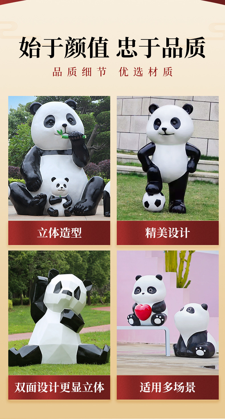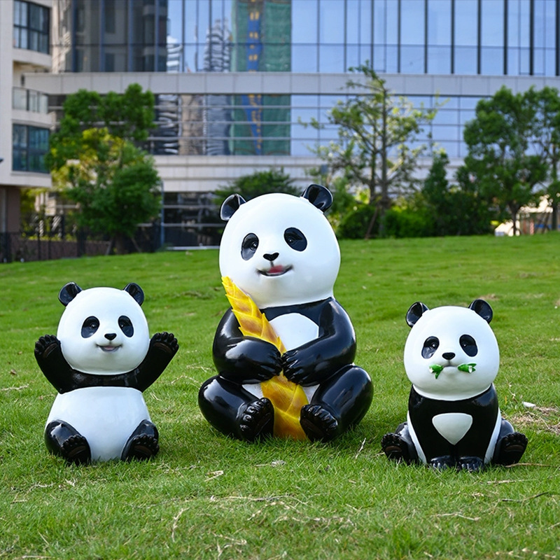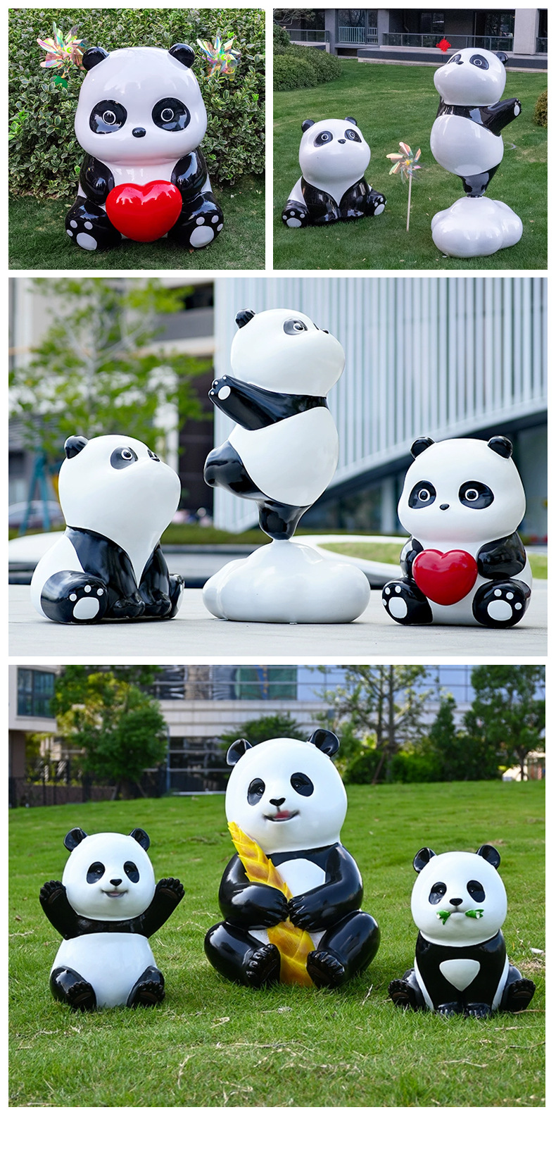 유리 섬유 만화 조각 맞춤형 팬더 인형 벽 등반 풍경 유치원 정원 잔디 예술 조각 장식품