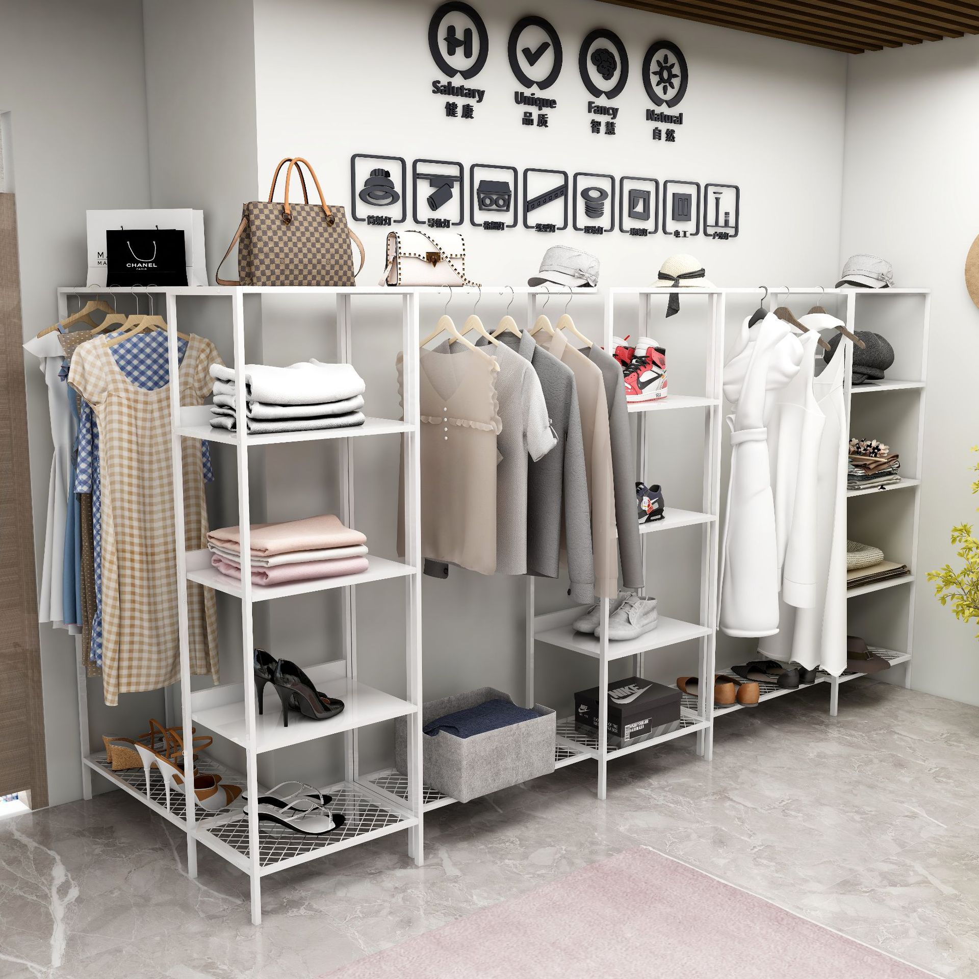 호텔, B&B, 아파트, 소형 아파트, 현관, 임대실을 위한 맞춤형 간이 옷걸이 옷장 수납스토어 가기