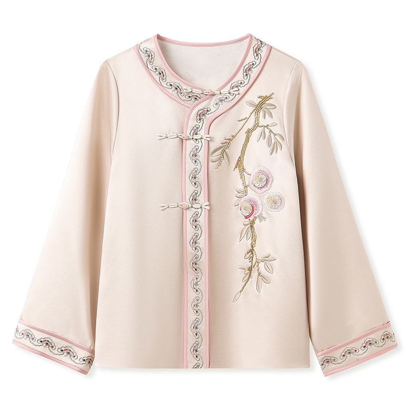 신중국풍 고급 단추 장식과 정교한 자수 디자인의 아세테이트 스트레이트 스커트 자켓 세트 여성용 N1010