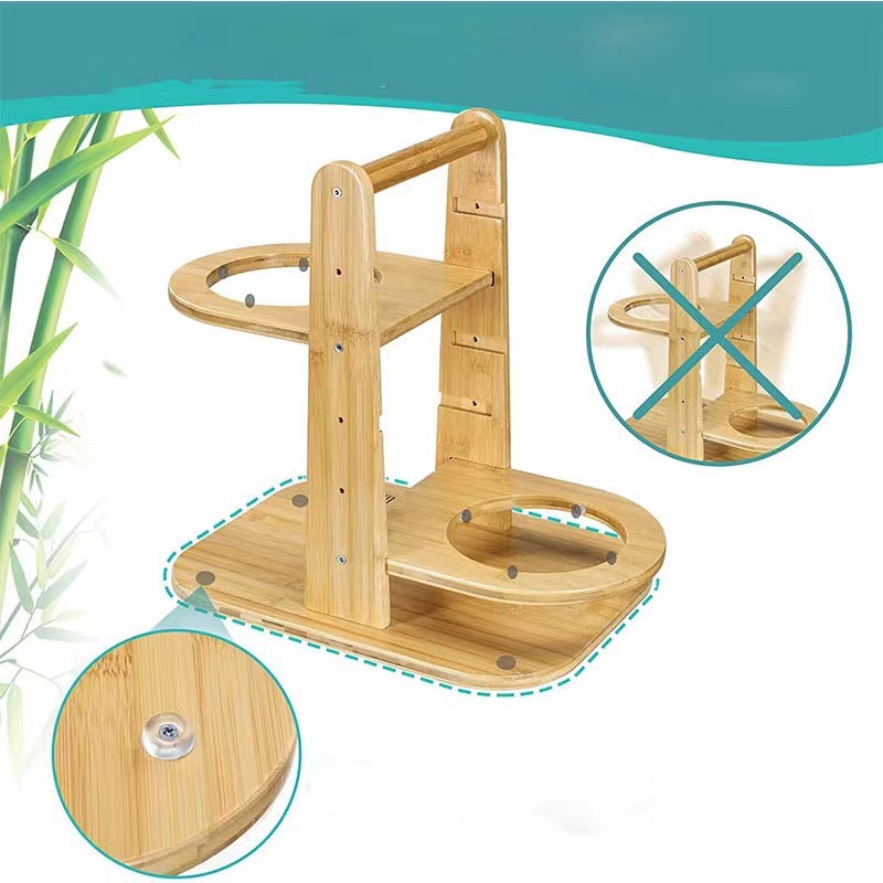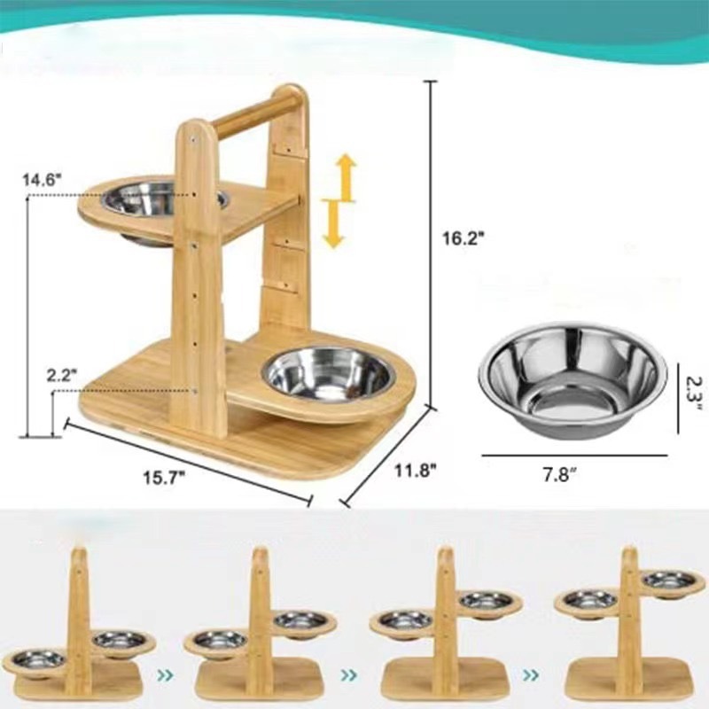 나무 조절 가능한 애완 동물 그릇 랙 더블 레이어 개 피더 휴대용 고양이 그릇 랙 개 그릇 홀더 개 식품 기구