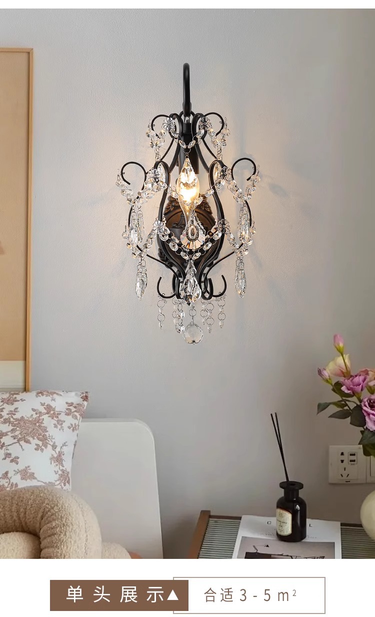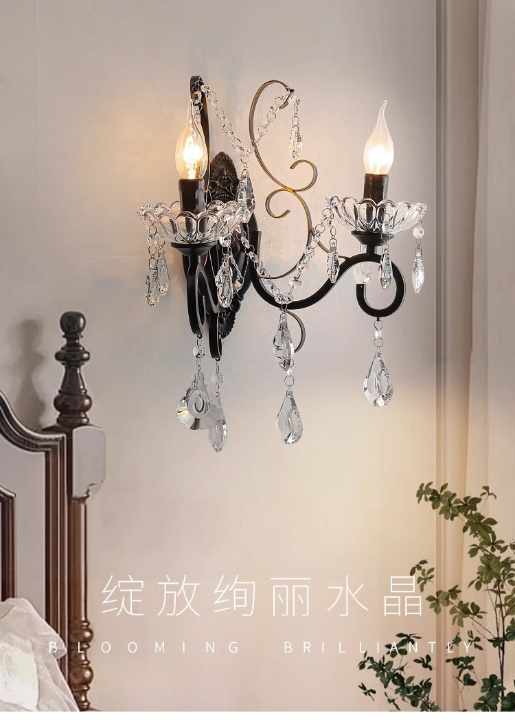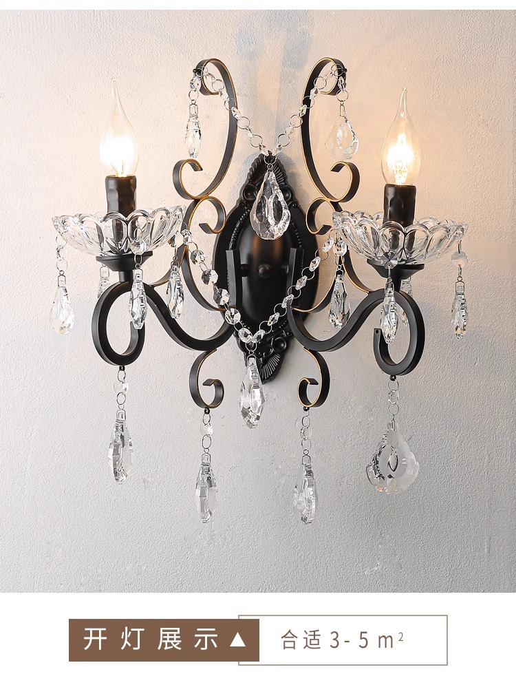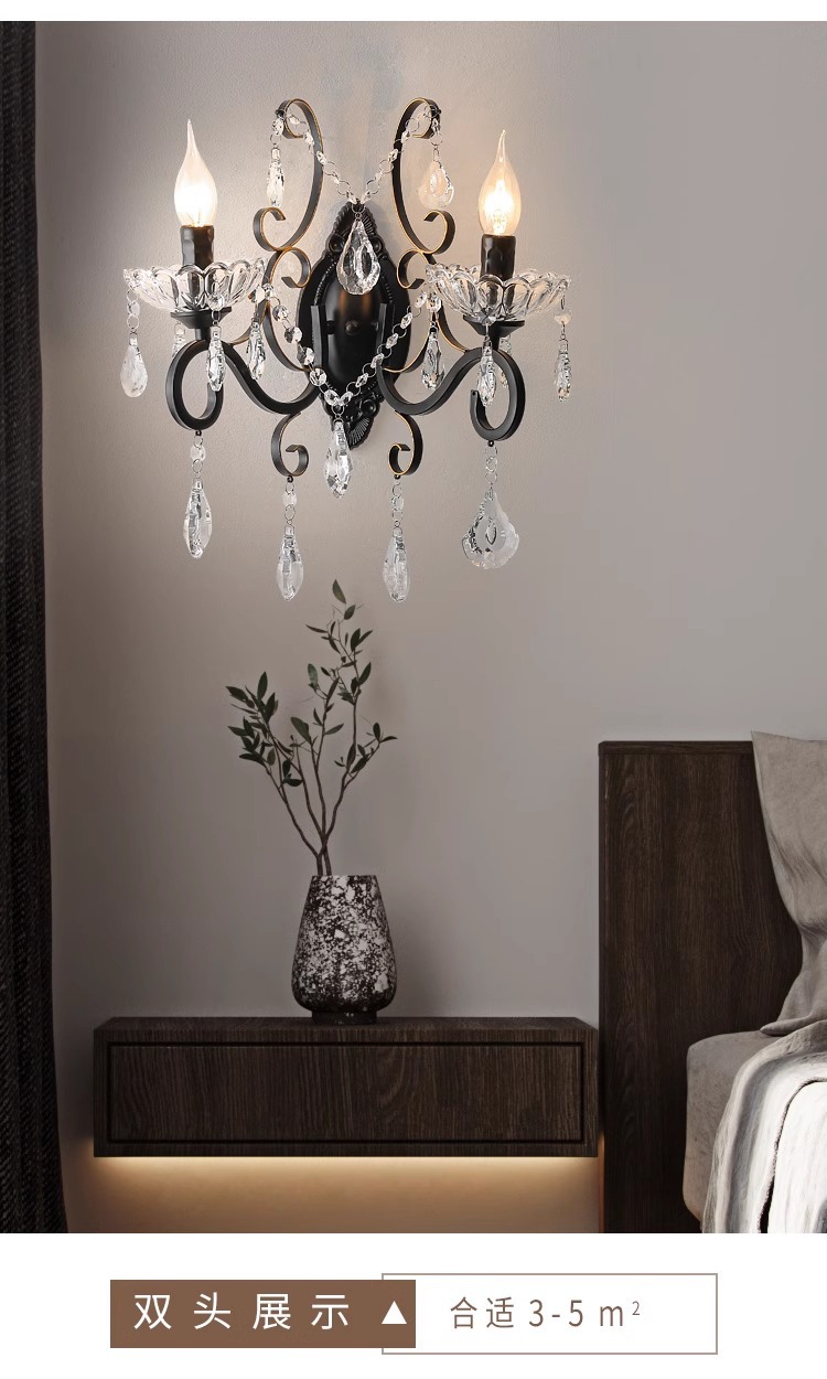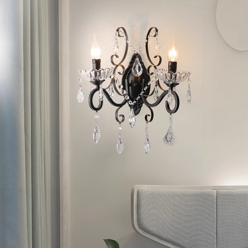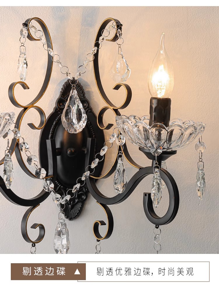 프랑스 디자이너 크리에이티브 레스토랑 샹들리에 미국 컨트리 라이트 럭셔리 바 유럽 거실 블랙 크리스탈 작은 벽 램프