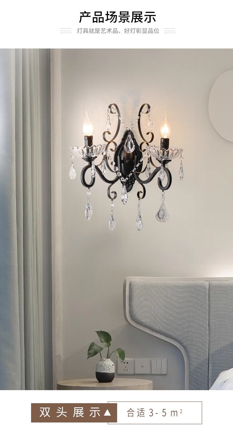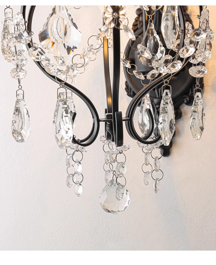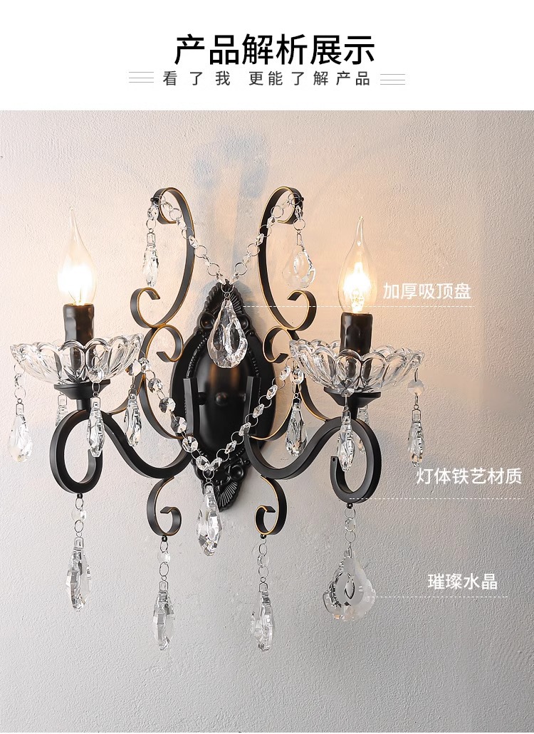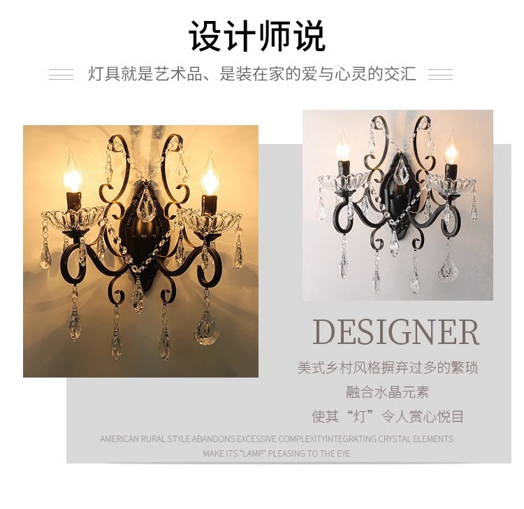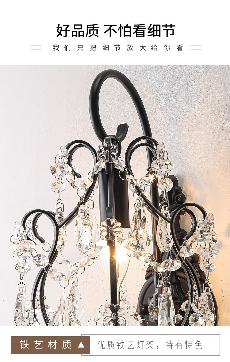 프랑스 디자이너 크리에이티브 레스토랑 샹들리에 미국 컨트리 라이트 럭셔리 바 유럽 거실 블랙 크리스탈 작은 벽 램프