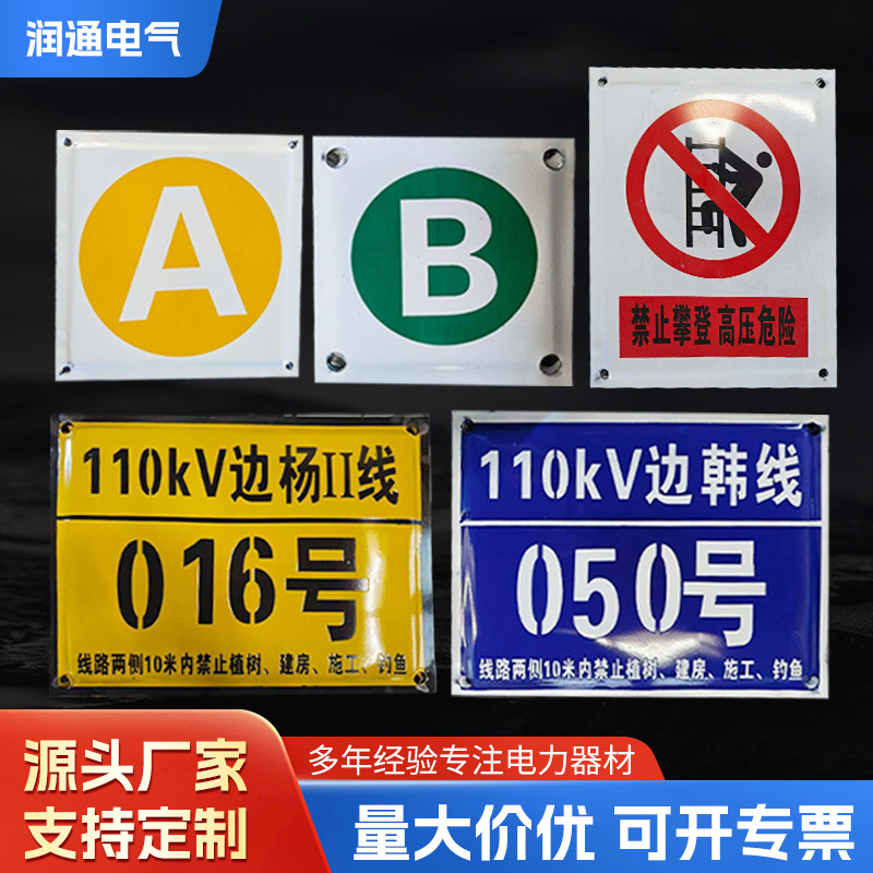전화 극 번호판 에나멜 판 위상 시퀀스 플레이트 고전압 케이블 경고 플레이트 안전 식별 플레이트 라인 극 번호판스토어 가기