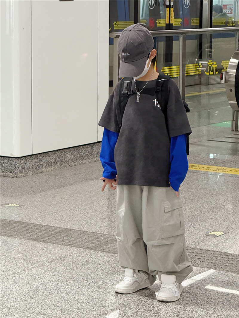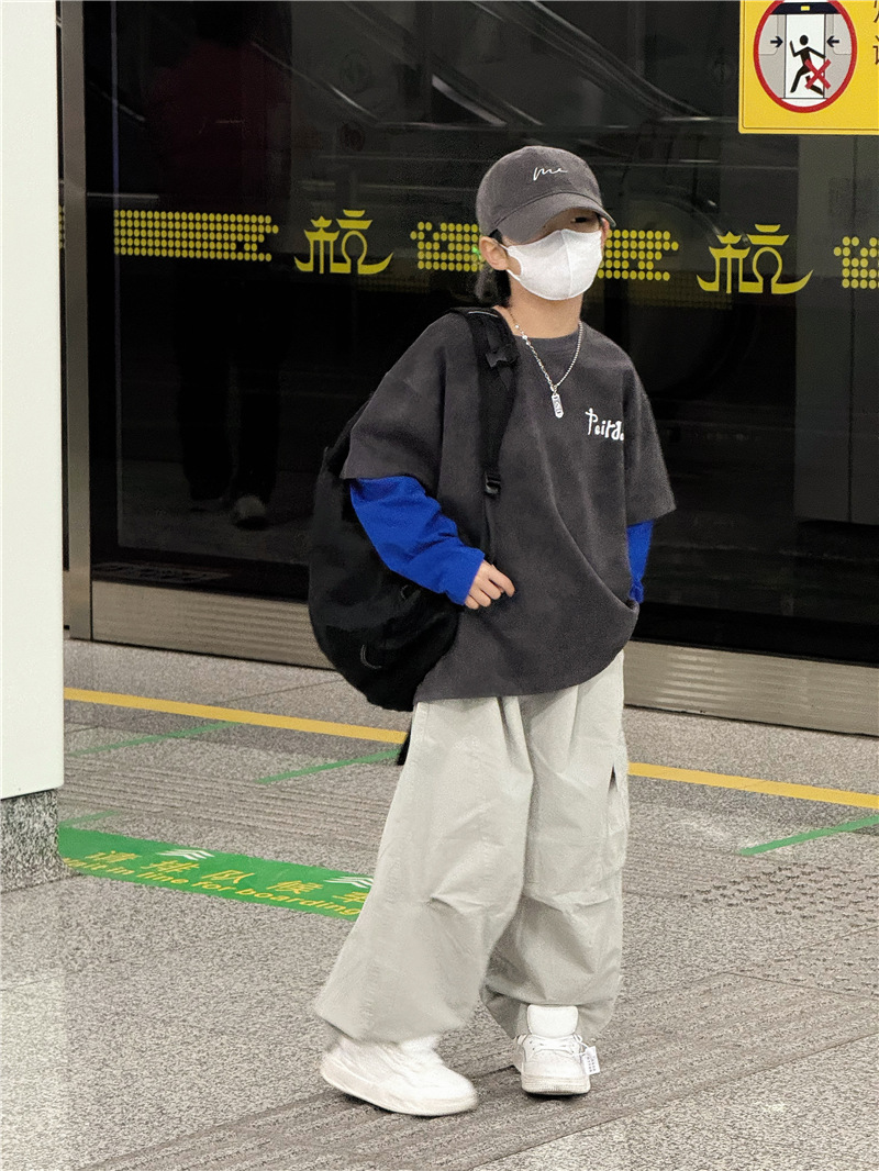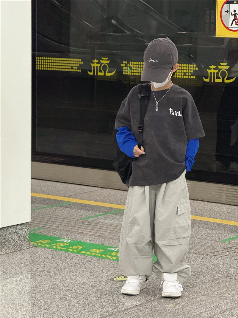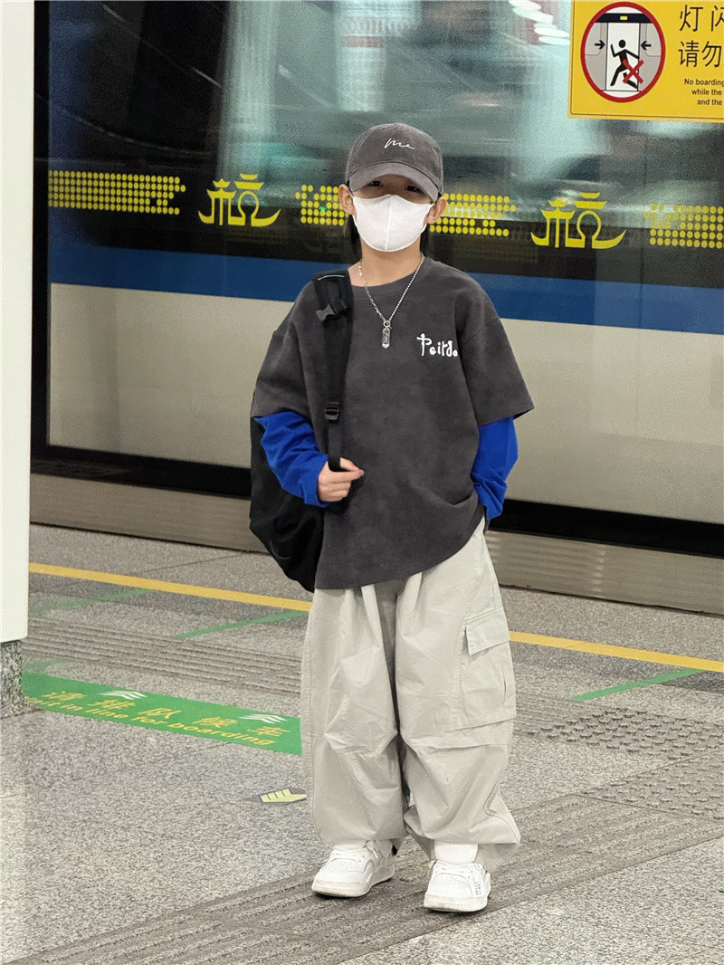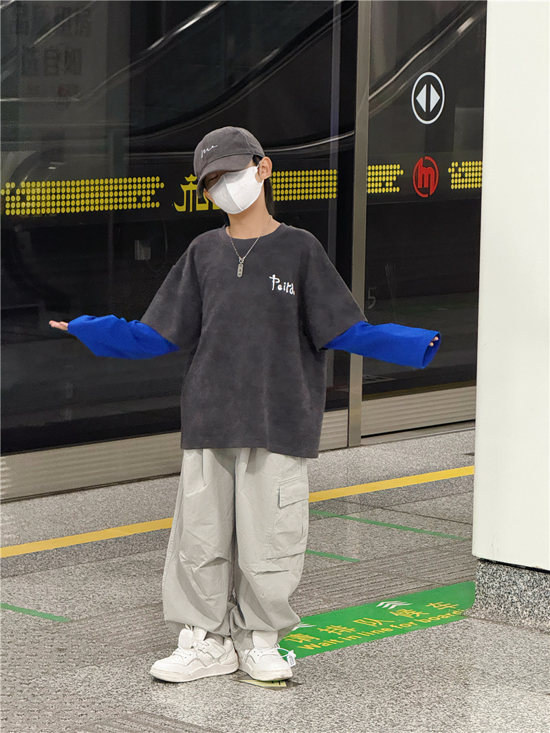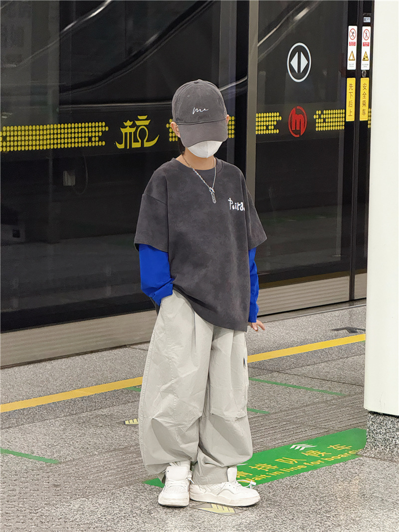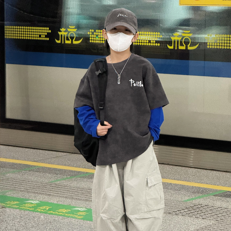 Baoduo 아동복 아동용 긴팔 티셔츠 2025 봄 신작 소년 바닥 셔츠 중소형 아동용 가짜 투피스 100-170