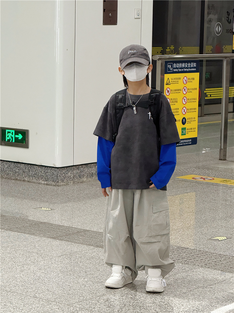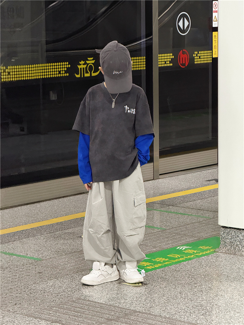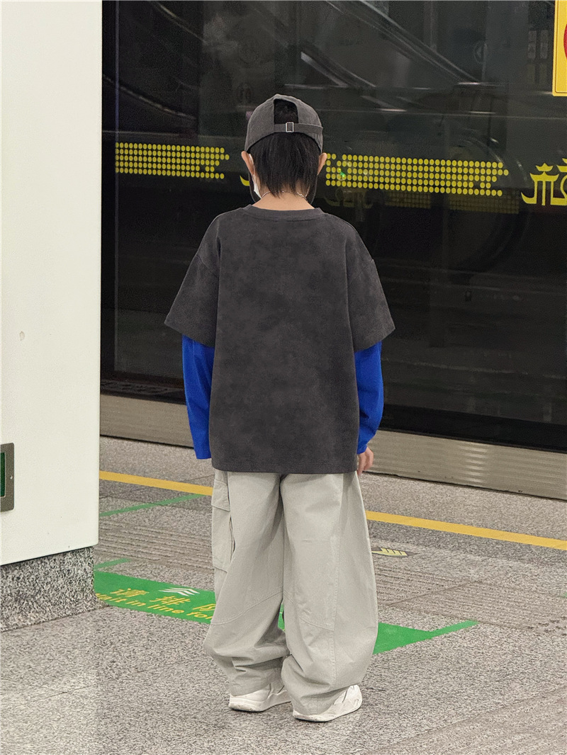 Baoduo 아동복 아동용 긴팔 티셔츠 2025 봄 신작 소년 바닥 셔츠 중소형 아동용 가짜 투피스 100-170스토어 가기