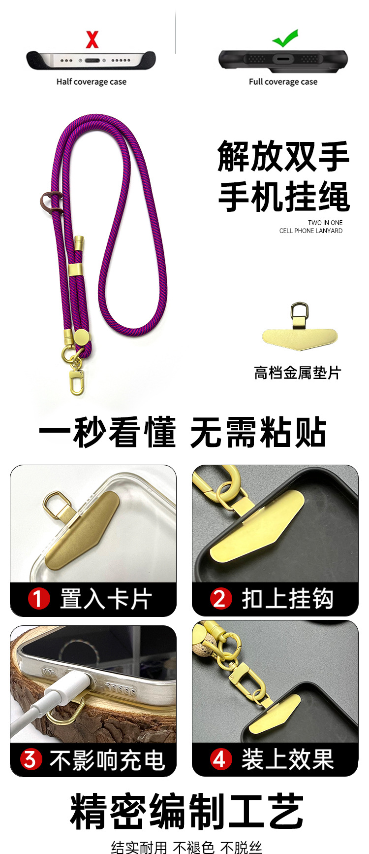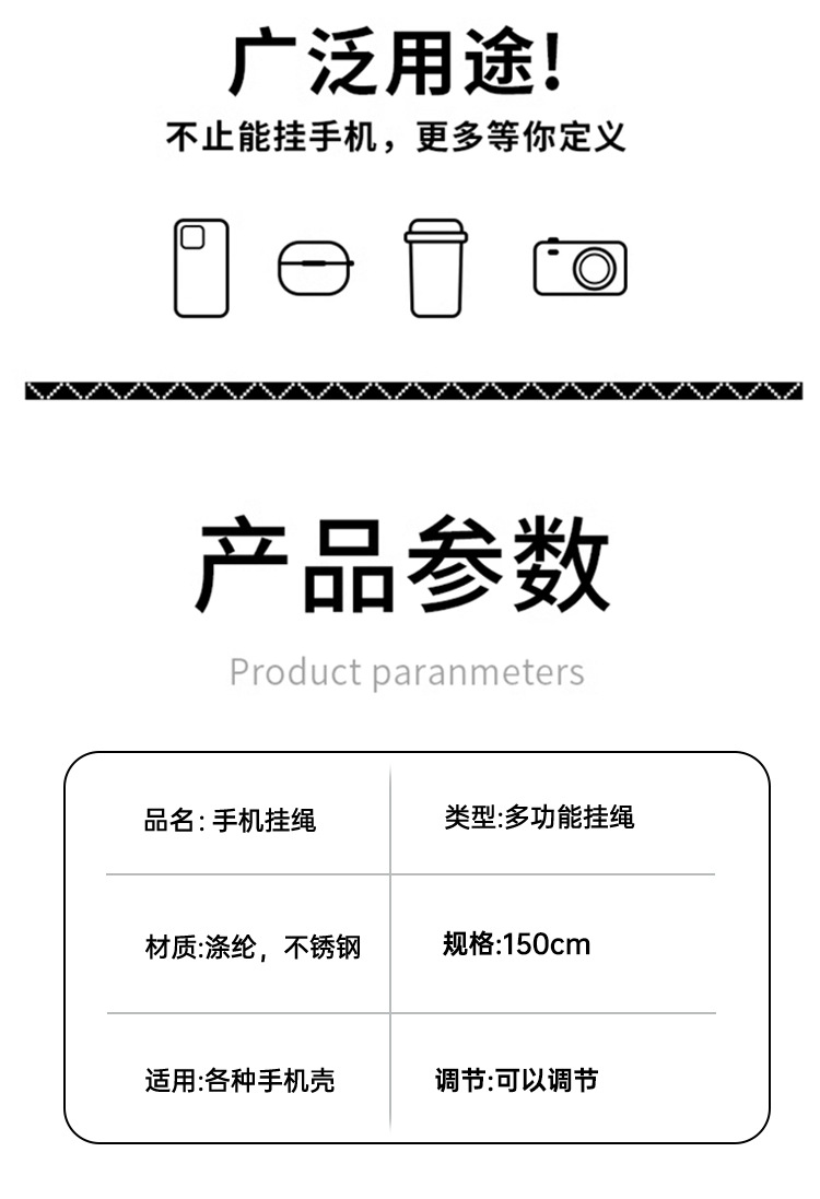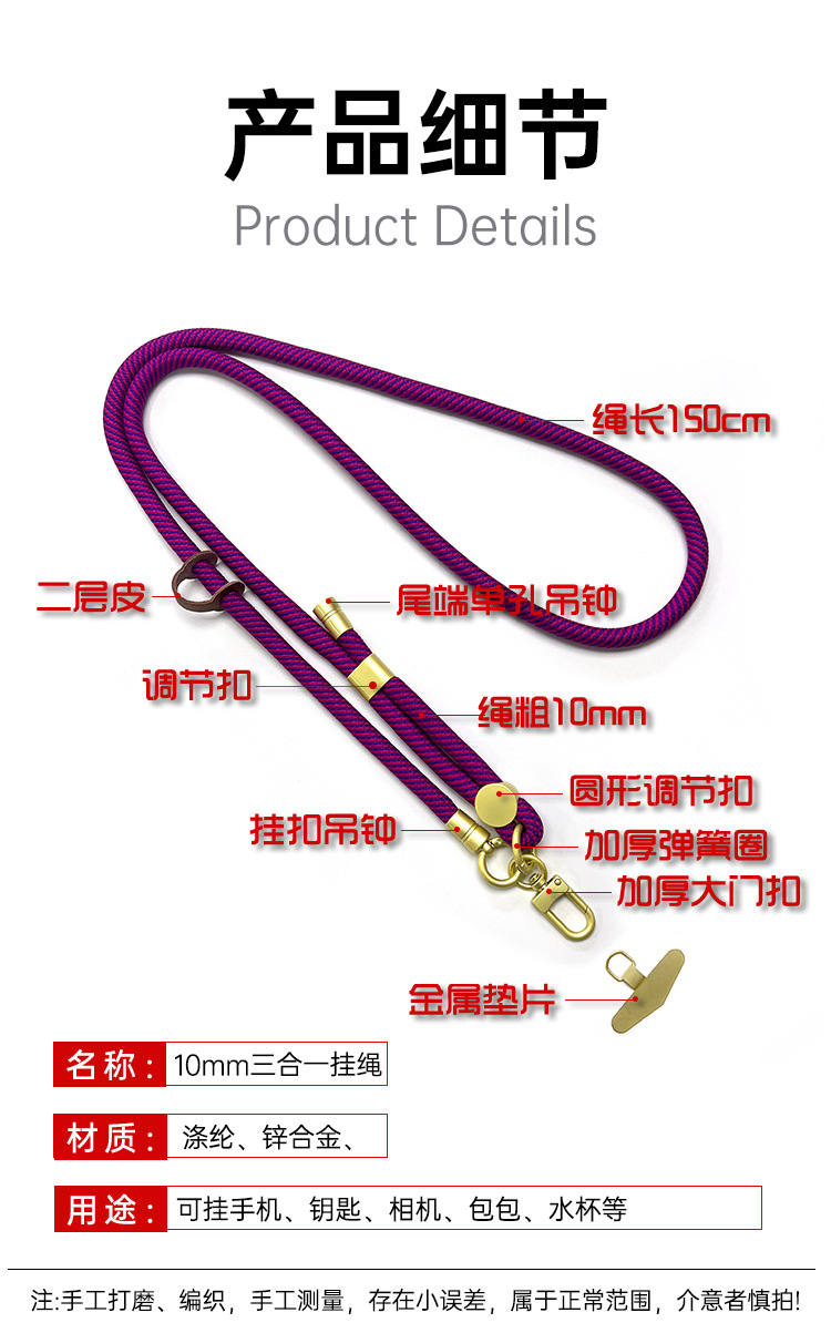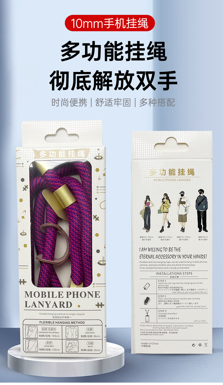 10mm 휴대 전화 스트랩 끈 조커 메신저 카메라 가방 쉘 넥 다기능 로프 강하고 내구성
