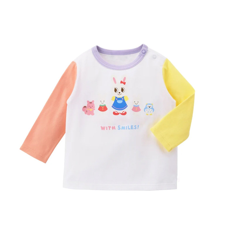 봄 아동복 일본 어린이 만화 귀여운 곰과 토끼 가장 친한 친구 프린트 컬러 블록 긴팔 티셔츠 바닥 셔츠스토어 가기
