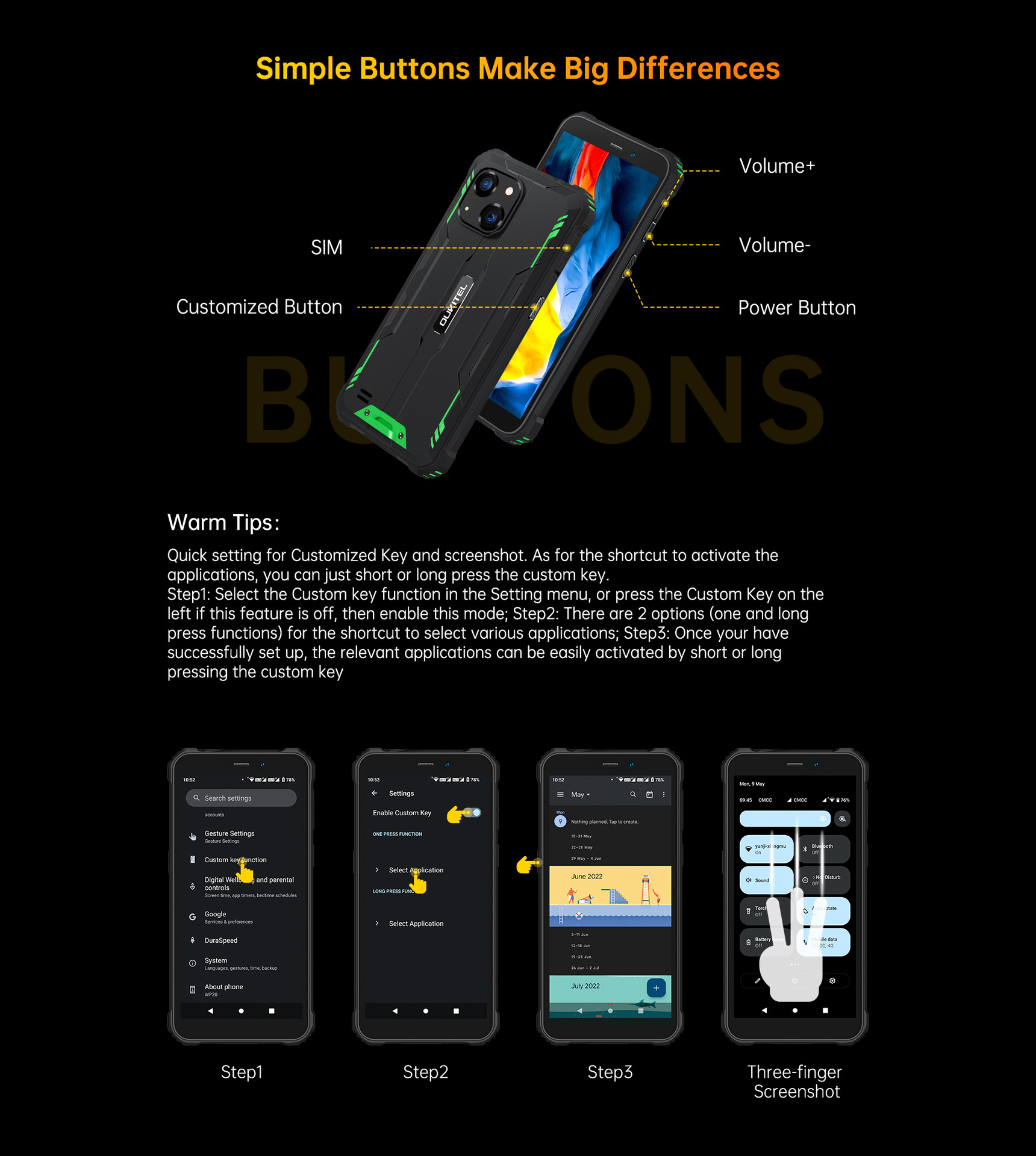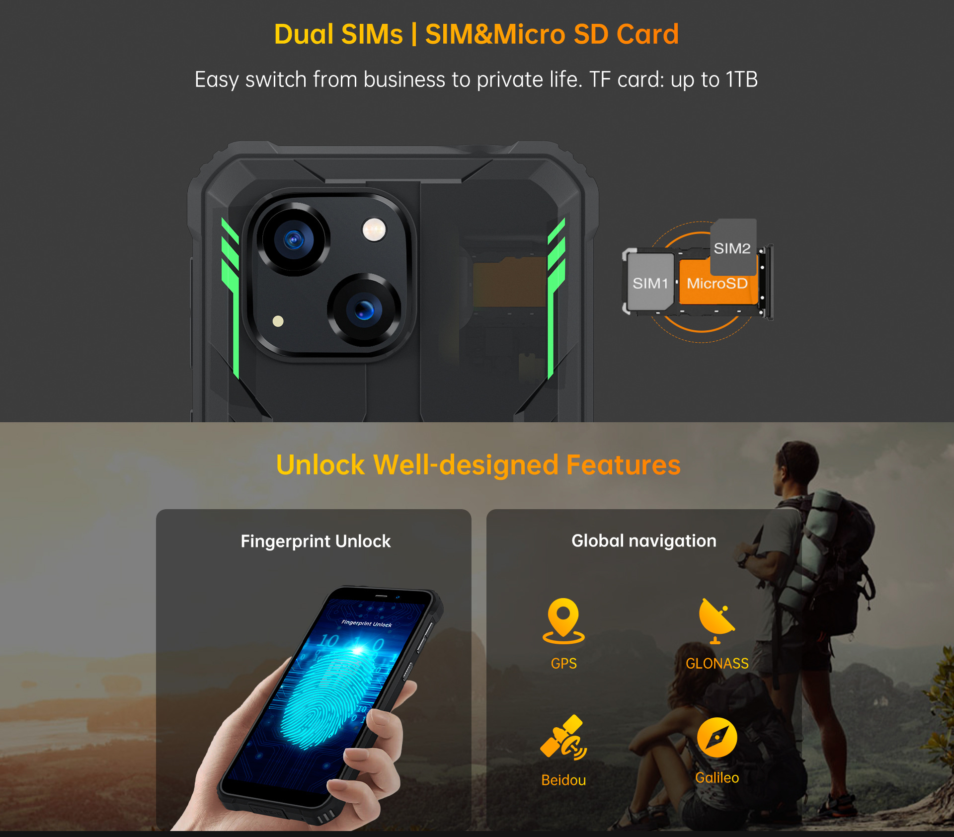 Ouqi WP32 5.93 "4 128GB 5800mAh 안드로이드 13 4G 3-proof 휴대 전화 홍콩에서 배송스토어 가기