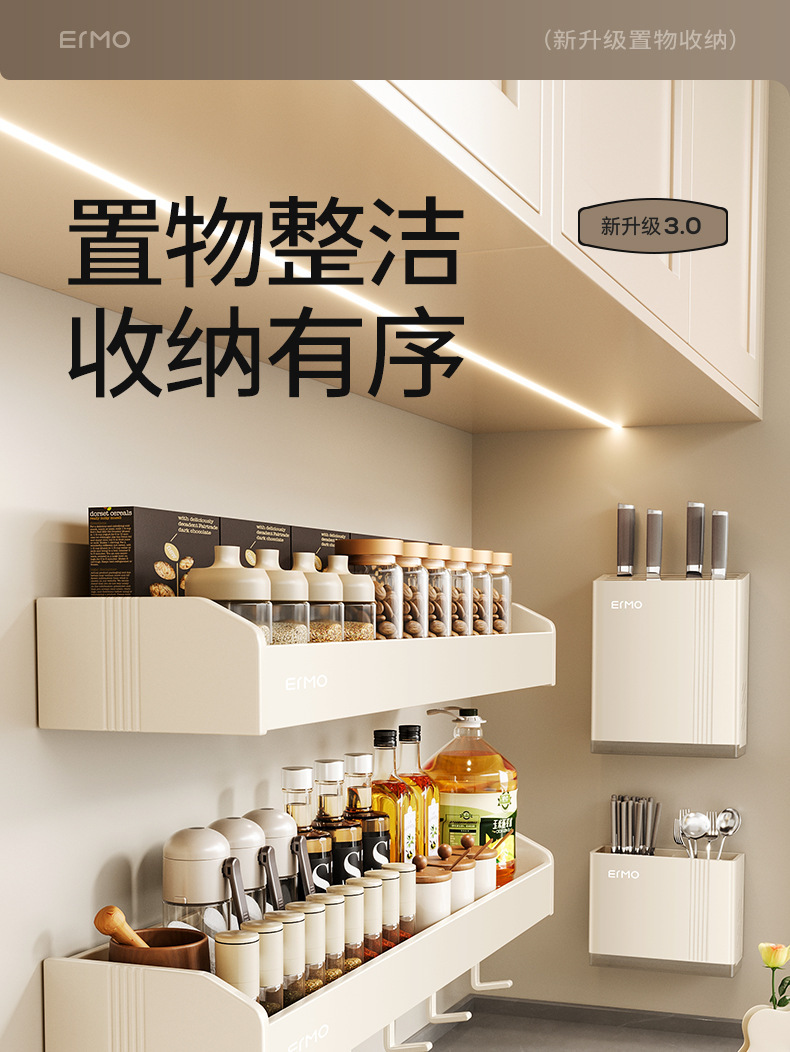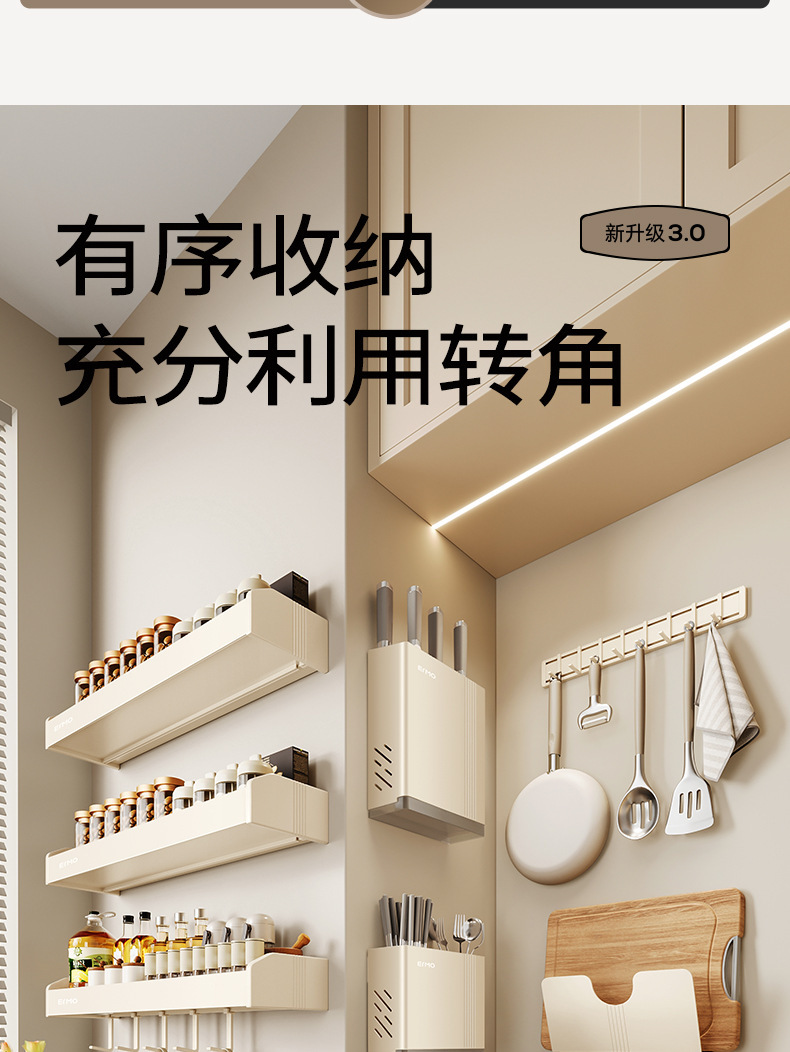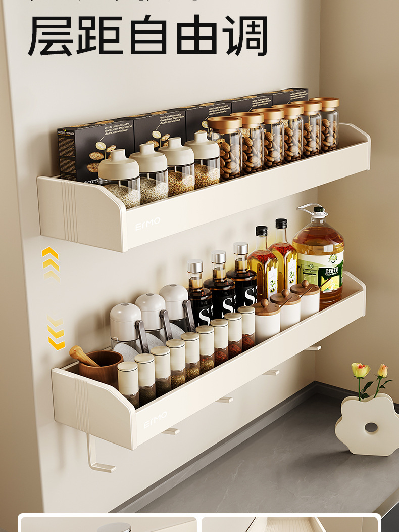 크림 스타일 주방 다기능 보관 랙 벽걸이 비 천공 조미료 가정용 용품 Daquan 나이프 랙 스토리지 랙