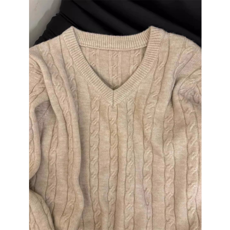 V 넥 게으른 하이 엔드 소프트 왁스 트위스트 스웨터 여성 2025 년 새 봄과 가을 긴 소매 스웨터 탑스토어 가기